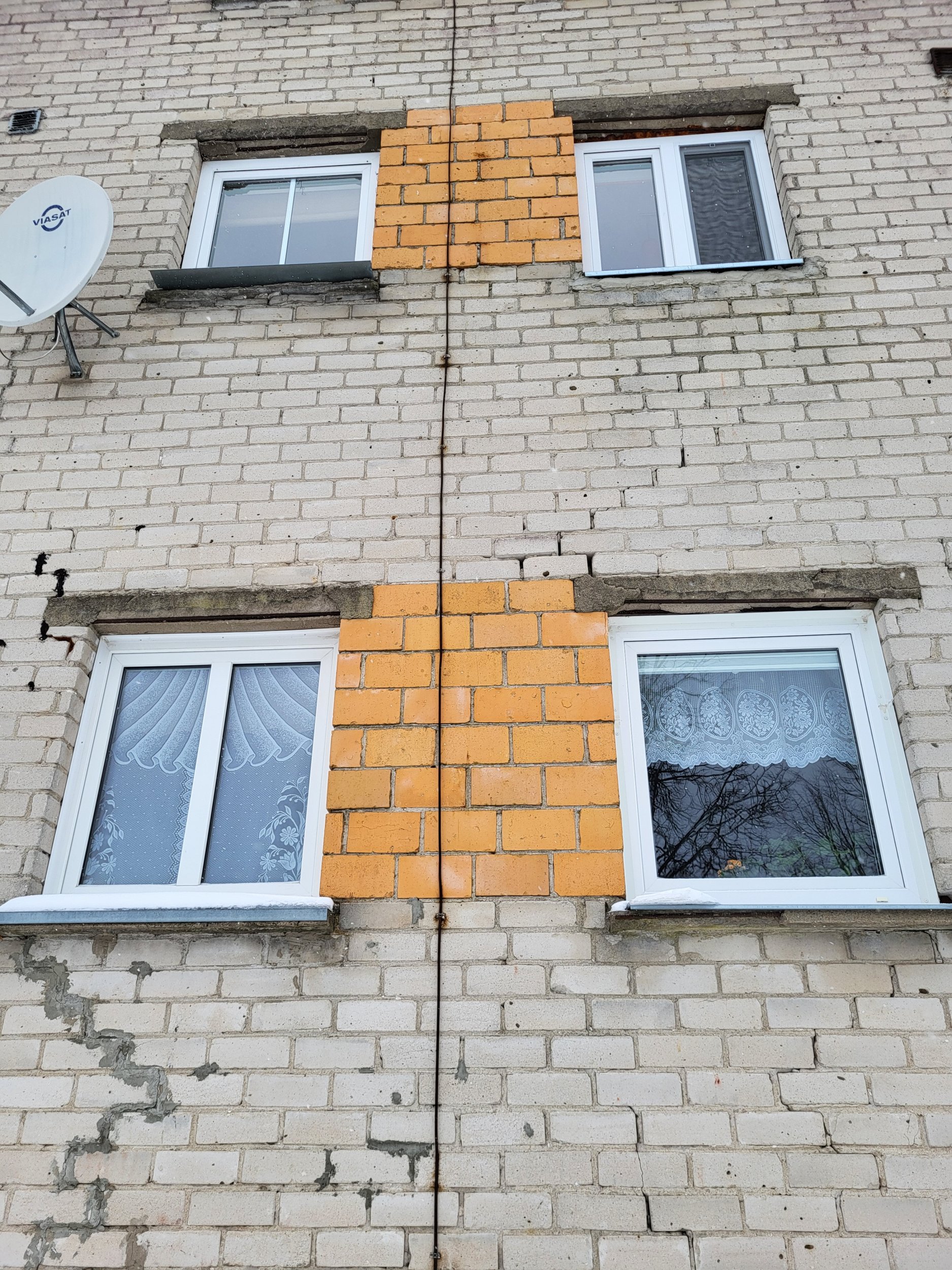 TÖÖ: Fassaadi korrastamine - seina pragude täitmine ja ühte tooni vuukimine; aknaaluse betooni ja aknasilluste betooni remont;