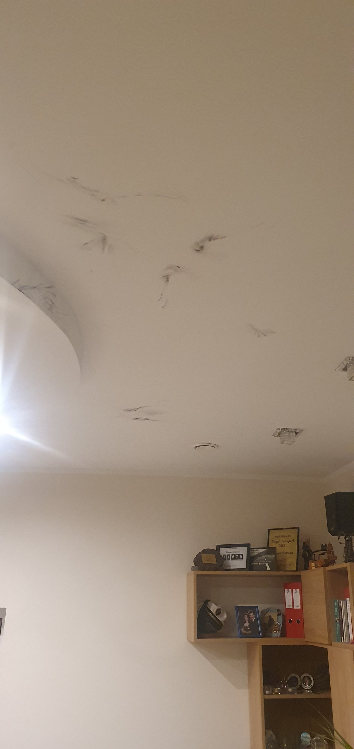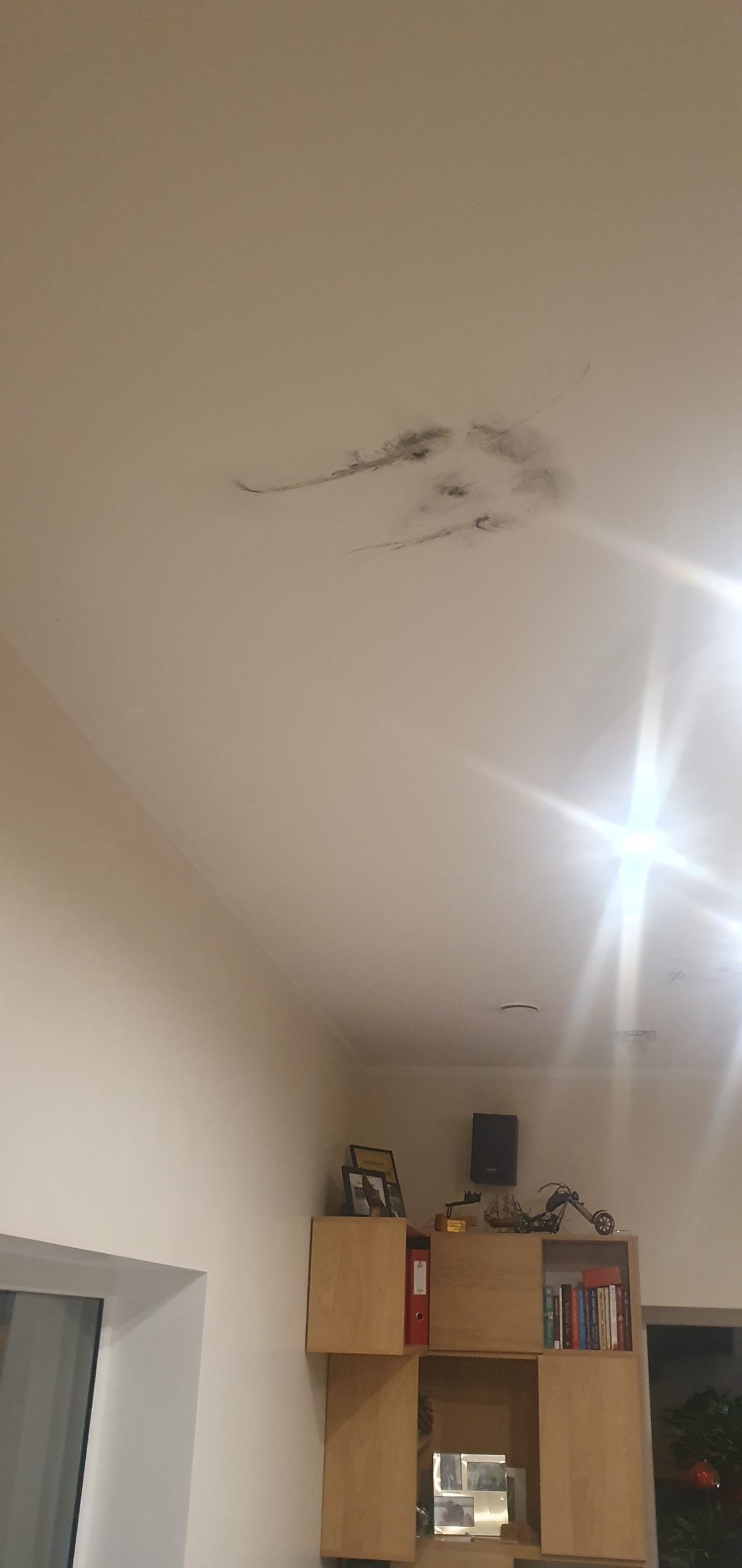 Elutuba lagi vaja üle värvida. Lagi ja sein on saanud osaliselt tahmakahjustusi.