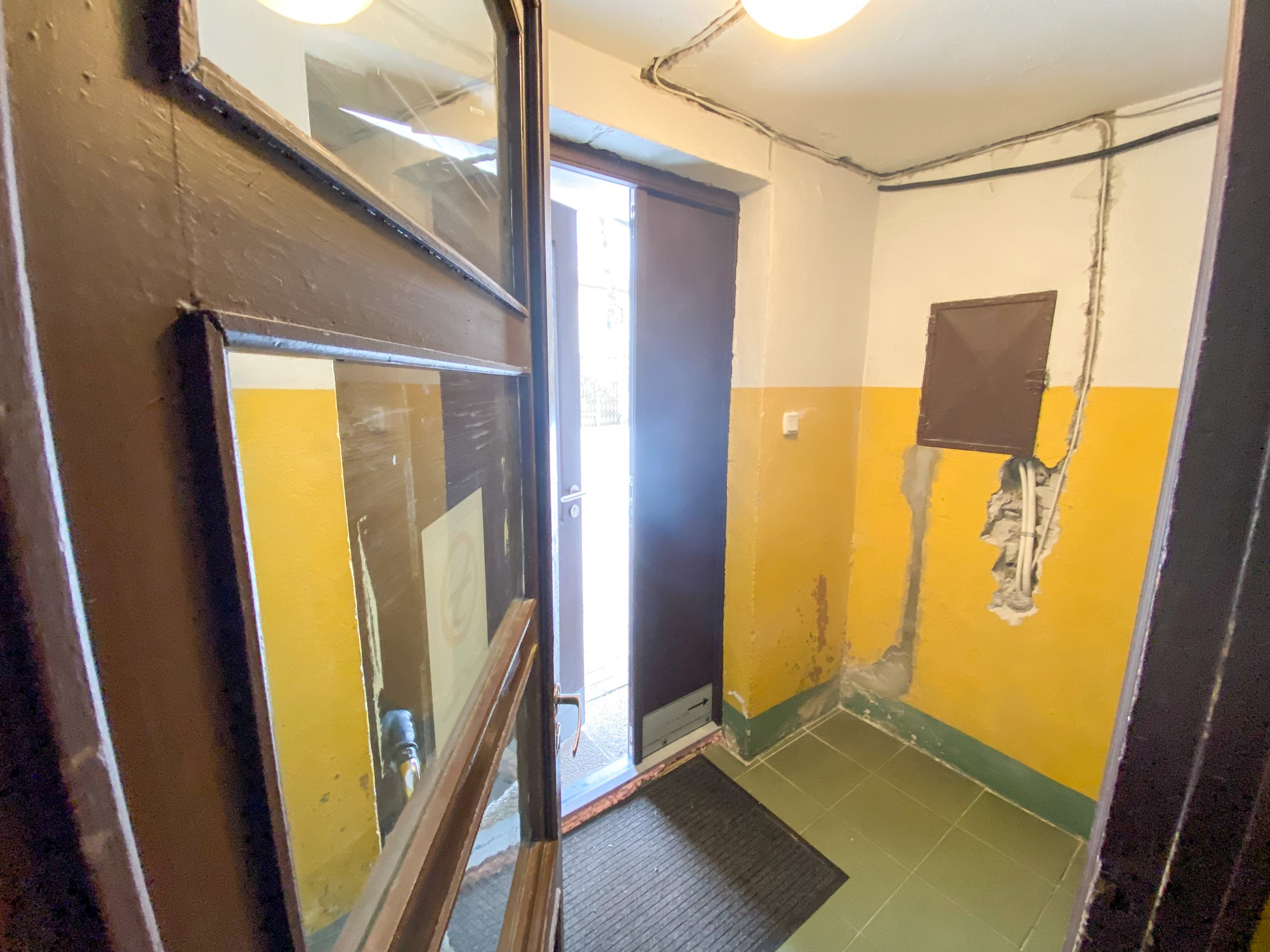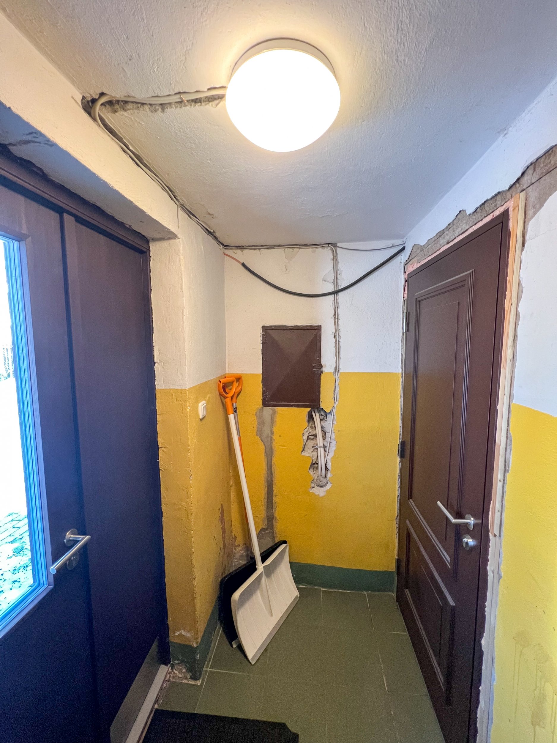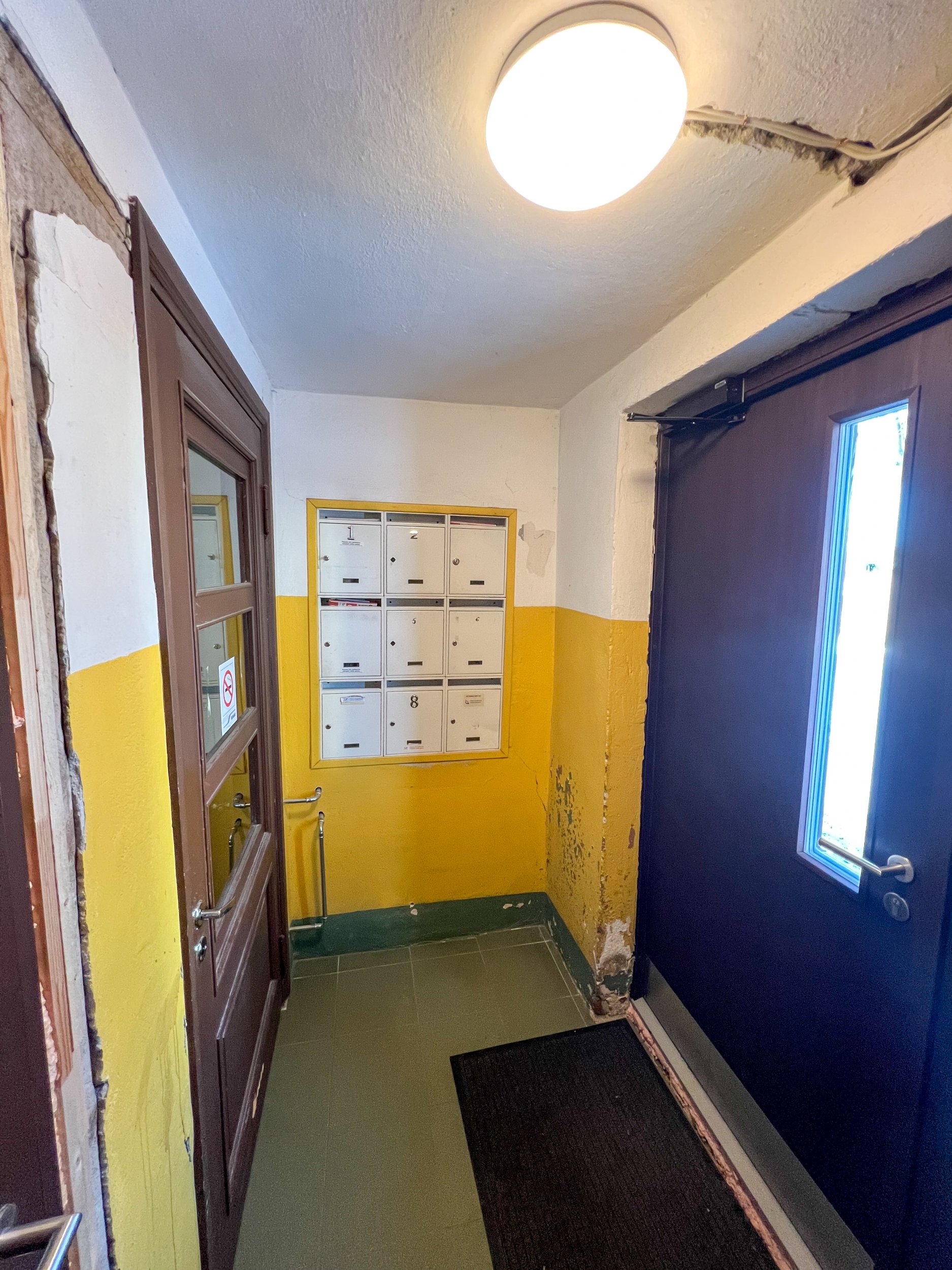 Esik läheb 100% värskendamisele. Uste vahetuse käigus said olemas olevad põrandaplaadid viga ja seega põrandale paigaldatakse uus plaat, vana plaadi peale. Viimistletakse seinad ja laed. Vana, sisemine trepikojauks puhastatakse ja värvitakse. Keldriuksele ja trepikojauksele paigaldatakse uued piirdeliistud (2 ust) ja viimistletakse etteantud värvitooniga. Välisuks ja keldrisse minev uks on uued ega vaja viimistlemist.
