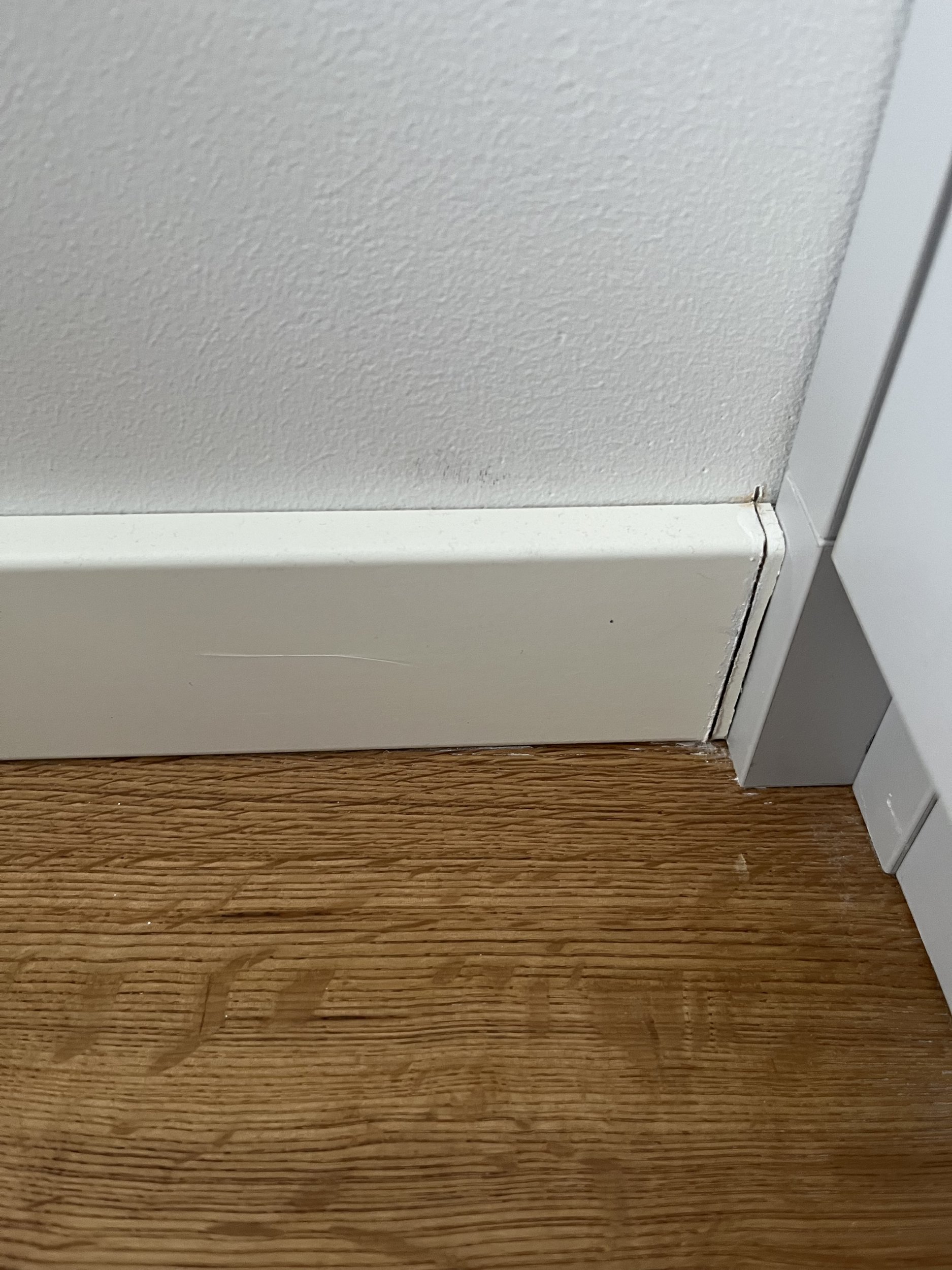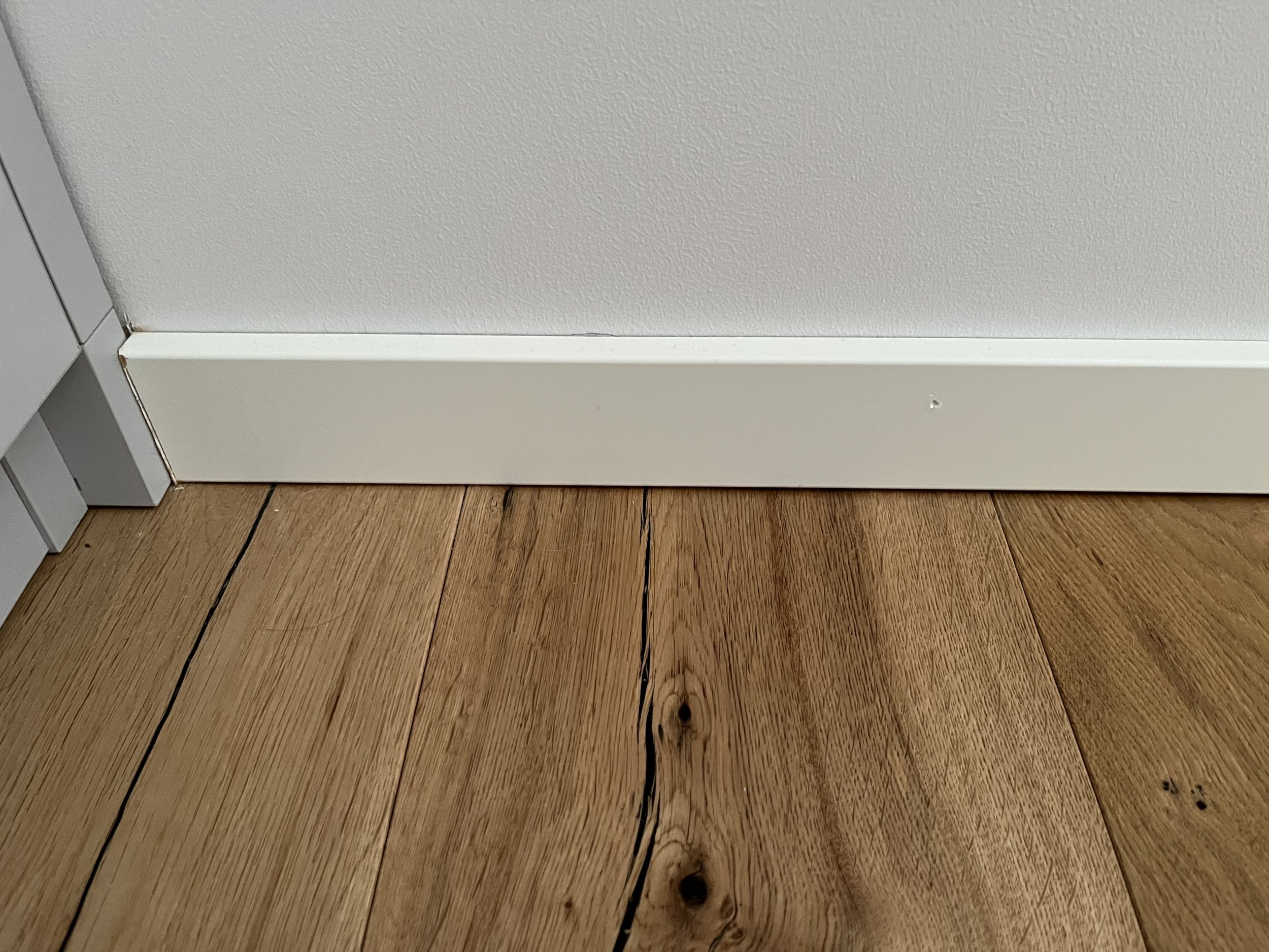 Magamistoa 2 seinal vanade põrandaliistude vahetus uute vastu.