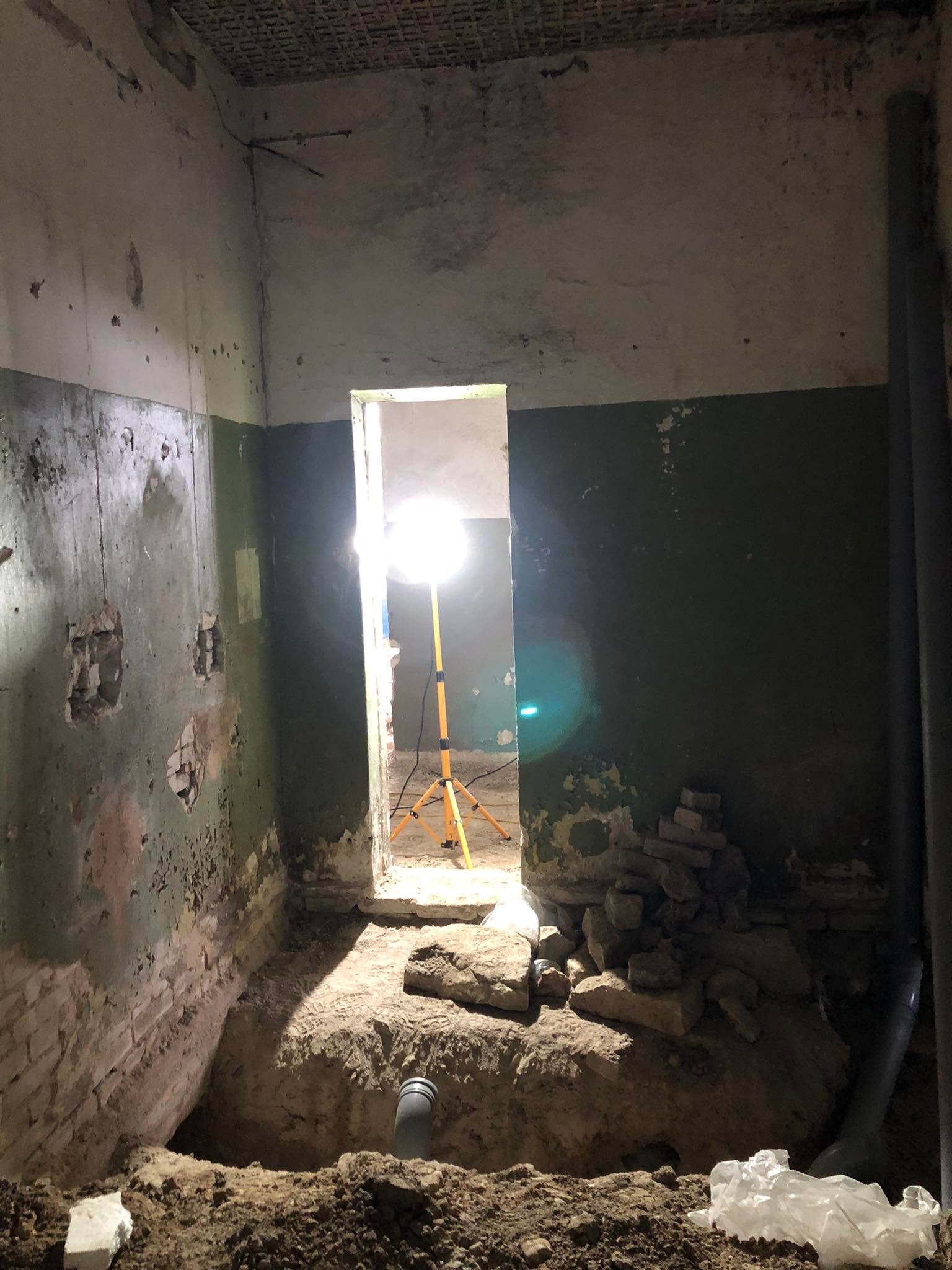 Vaja eemaldada siis vana krohv/pahtel/värv telliskiviseintelt, et jääks ühtlane telliskivisein. Hiljem läheb kunagi arvatvasti uue krohvi alla ja midagi osa hiljem taastamiseks, et jääb ilus telliskivisein.