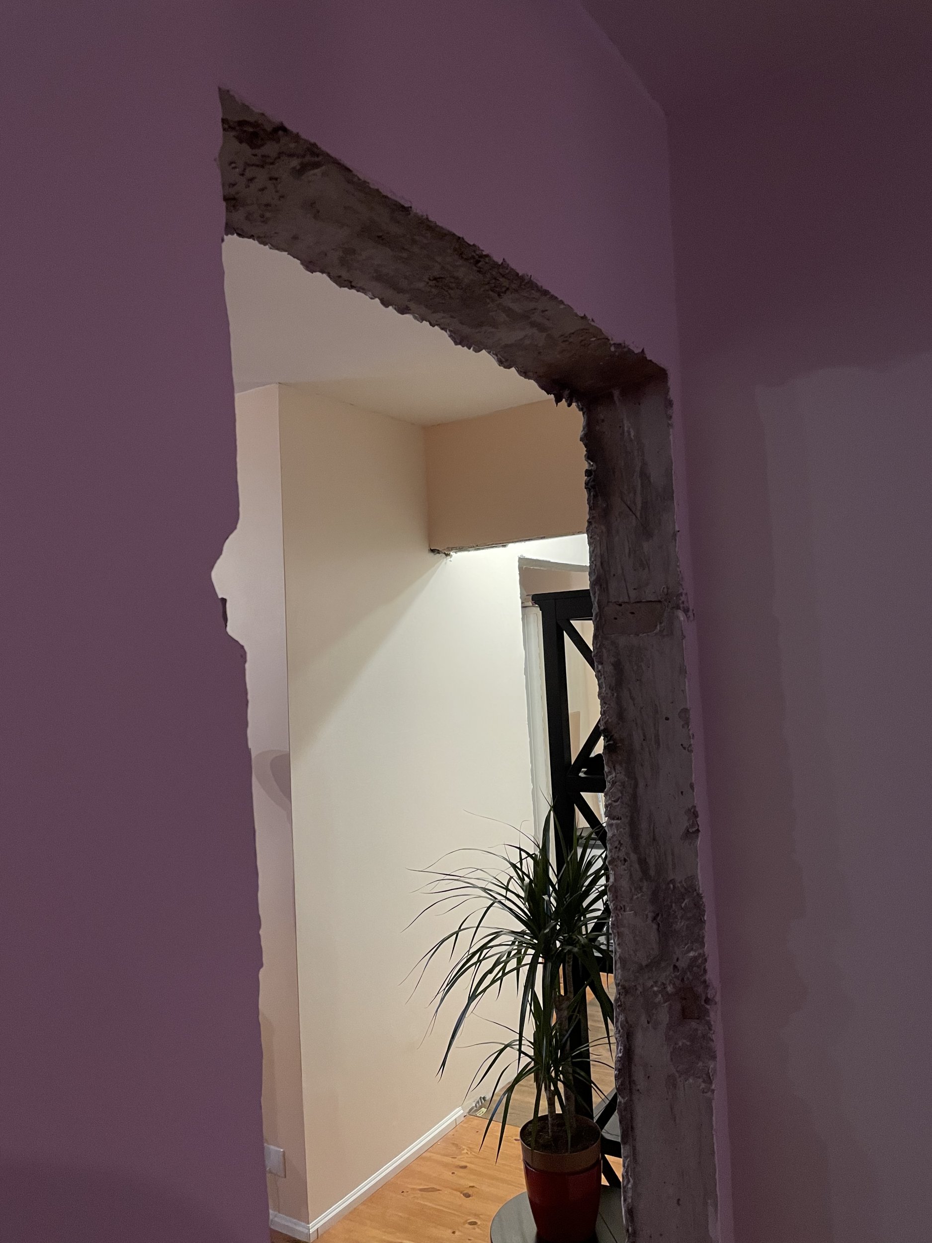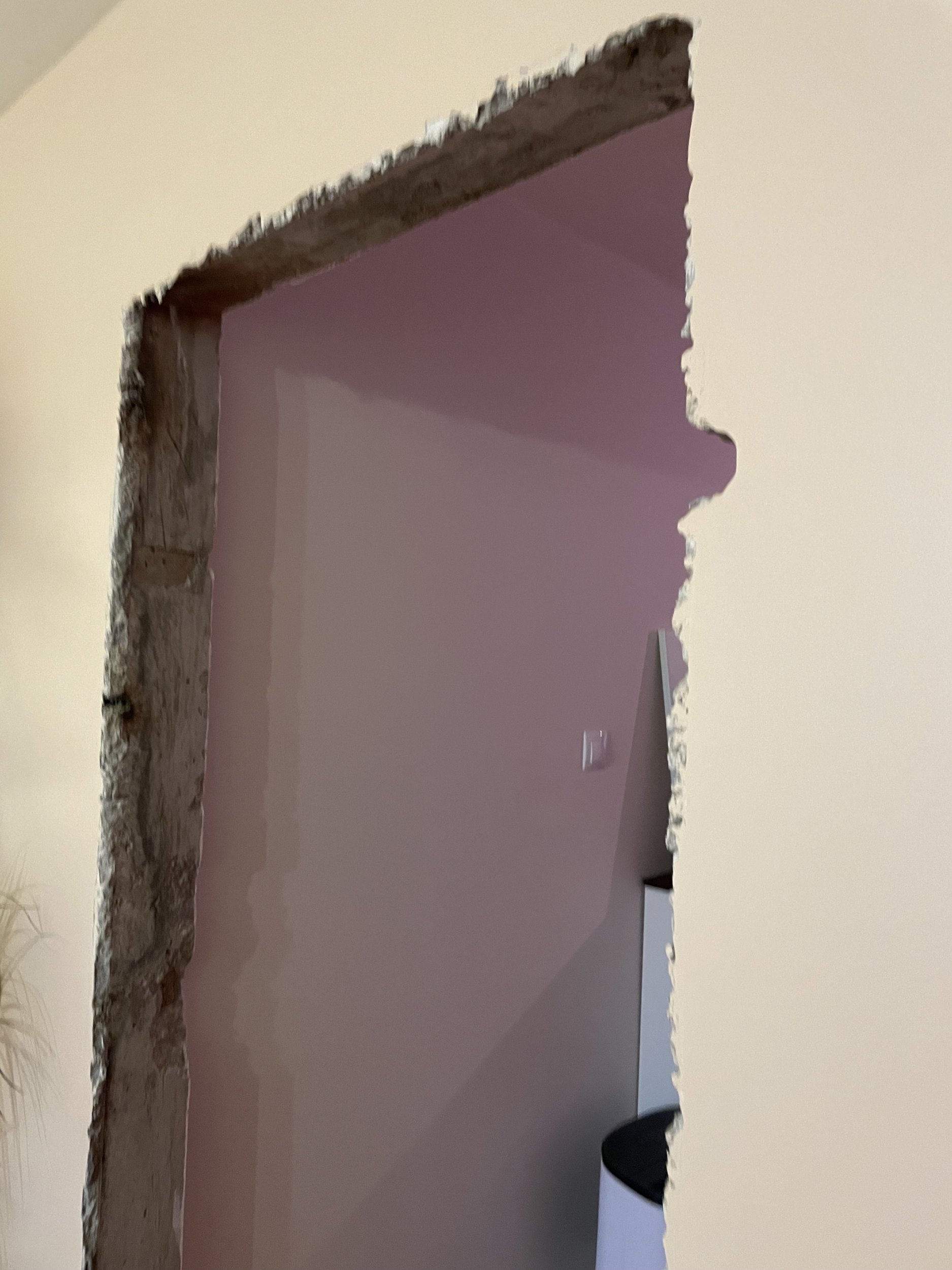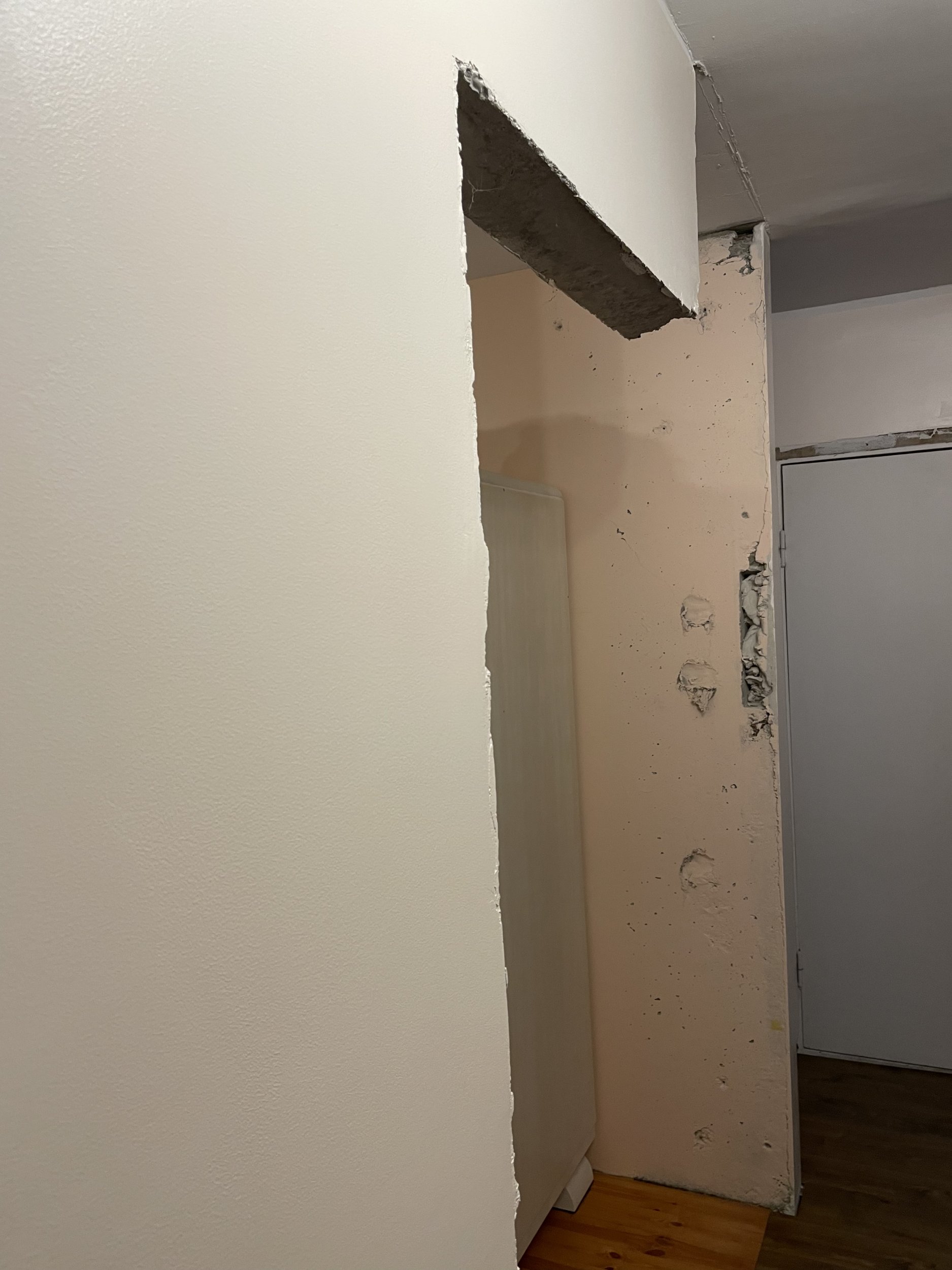 Ühe ukseava kõrval on 81 x 250 x 12,5 cm ava, mis oleks vaja kinni ehitada.