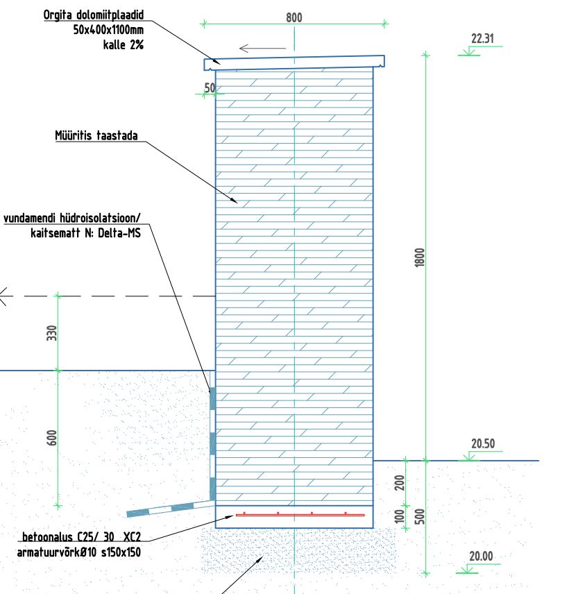 Paekivimüüri ladumine - 47 meetrit pikk, 2m kõrge, 70cm lai. Ühelt poolt viimistletud vuuk 1,8m ulatuses, teiselt poolt 0,8m ulatuses. Betoonvundament valmis.
