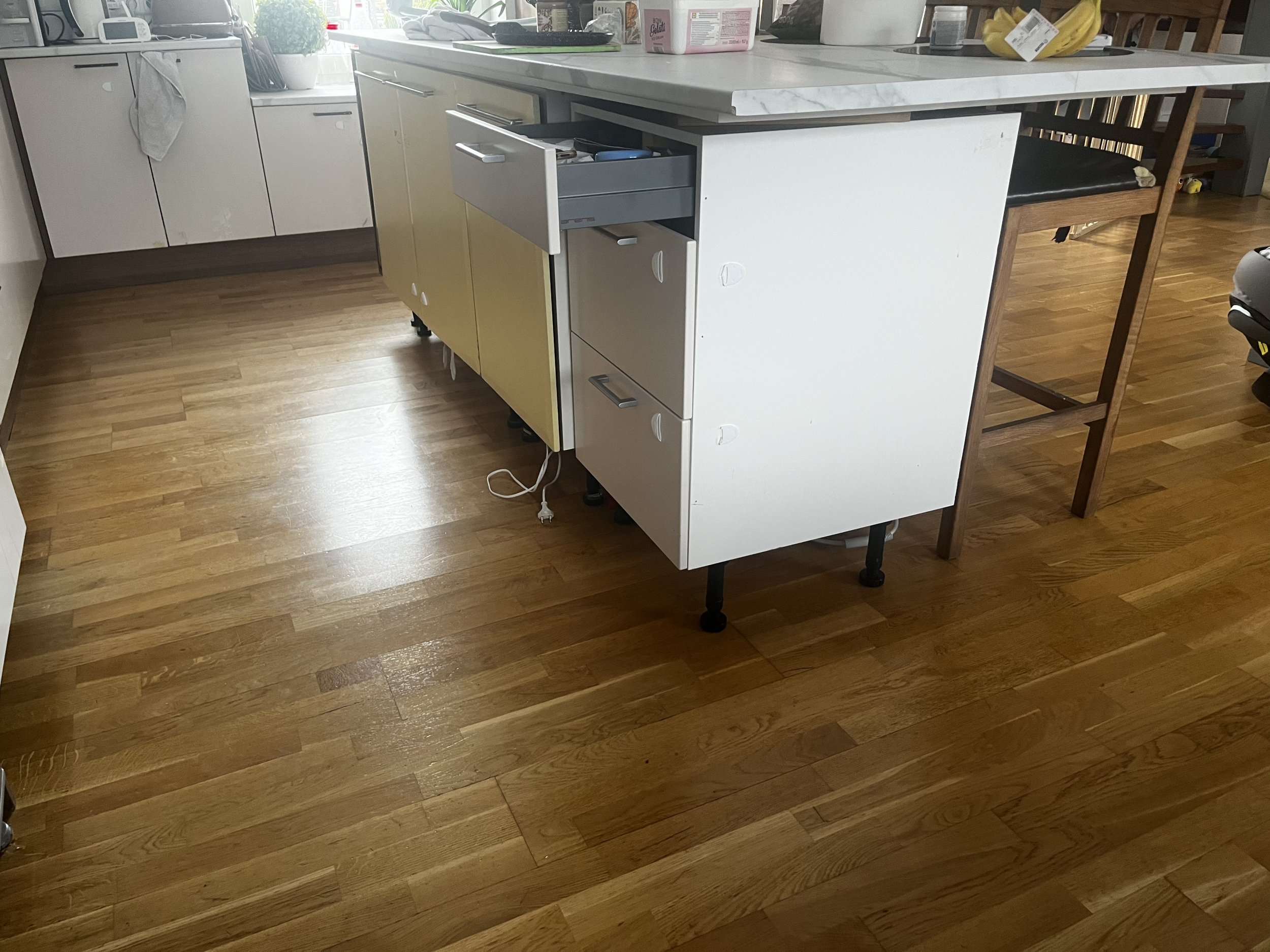 Betoonist köögipõranda lihvimine paar sentimeetrit madalamaks, et oleks ülejäänud põrandaga tasa. Põrand 3x3m.