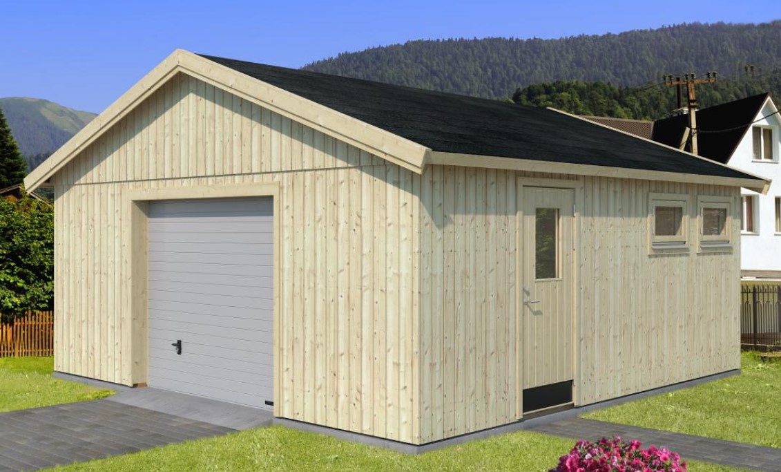 -valmisseinad kogupaksusega 160 mm (18mm peensaetud puidukaitsega töödeldud voodrilaud tuuletõkkekilega+44×95 mm sõrestik+ tuulutusliist 19x45mm ja voodrilaualiist 28x70mm) - siseseinad kaetud 12mm OSB plaadiga, soojustus 100 mm -punnitud katuselauad 19 mm, katus soojustatud 200mm -põrandat ei ole -immutatud põhjaprussid -katus 40 m² / 20,0º bituumensindliga -harja kõrgus 337 cm ja seina kõrgus 216 cm -pakettklaasid 3-9-3, 40mm vahtplastiga soojustatud uks silinderlukuga 78×181 cm , - sektsioonuks 221 x 188 cm(mootor lisahinnaga) lengidel kummitihendid ja silikoon -pakettklaasiga aknad 69 x 38 cm, metallist tilganinad 5 aastane tehase garantii, 2 aastat ehituslik garantii |