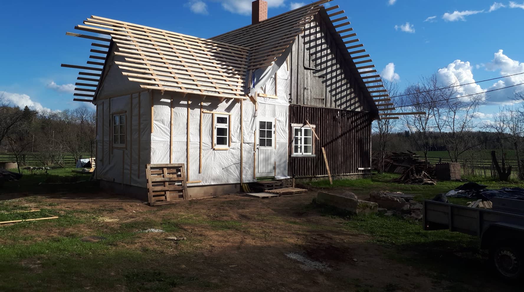 Karkassi ehitus, rihtimine, ristiroov, voodrialua paigaldus, akende vahetus. 5334.-