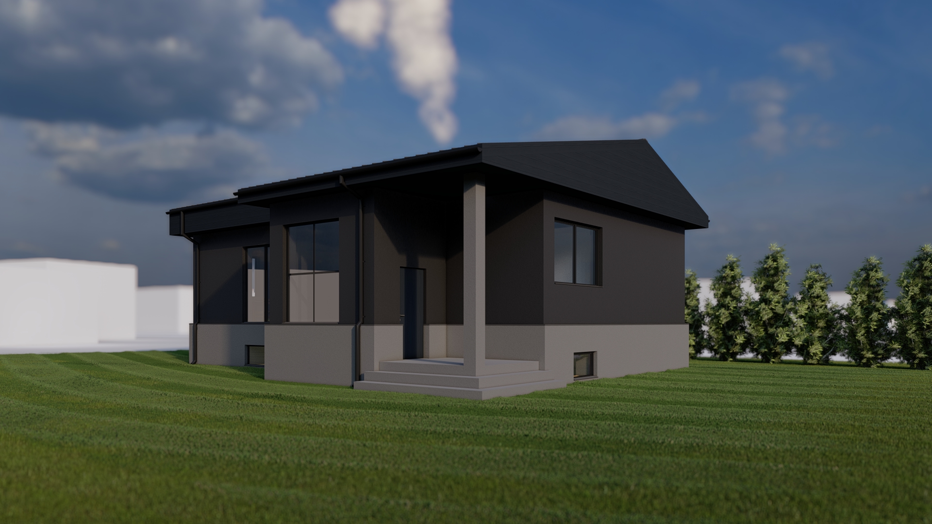 Piltidel on nähe eramu hetkeolukord ja 3D piltidel lõpptulemus.