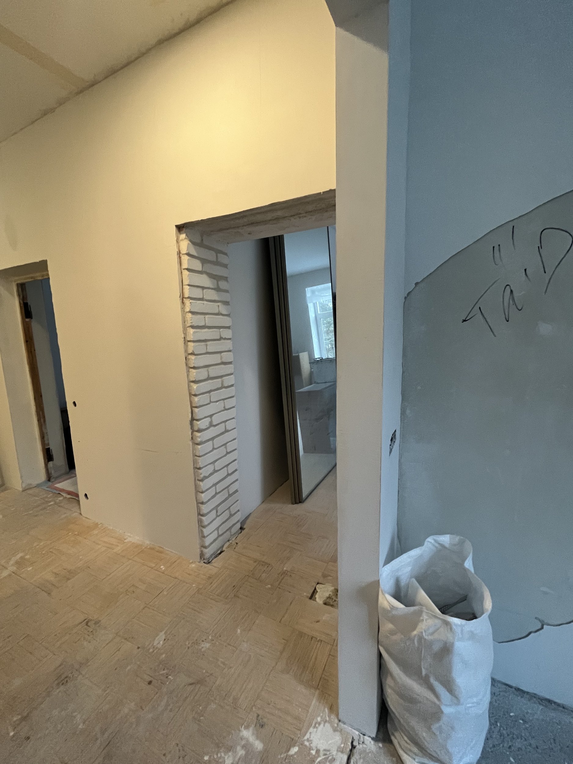 Esiku lagi ja seinad, köök ja suur tuba seinad , väikses toas lagi ja seinad viimistleda ning värvida.