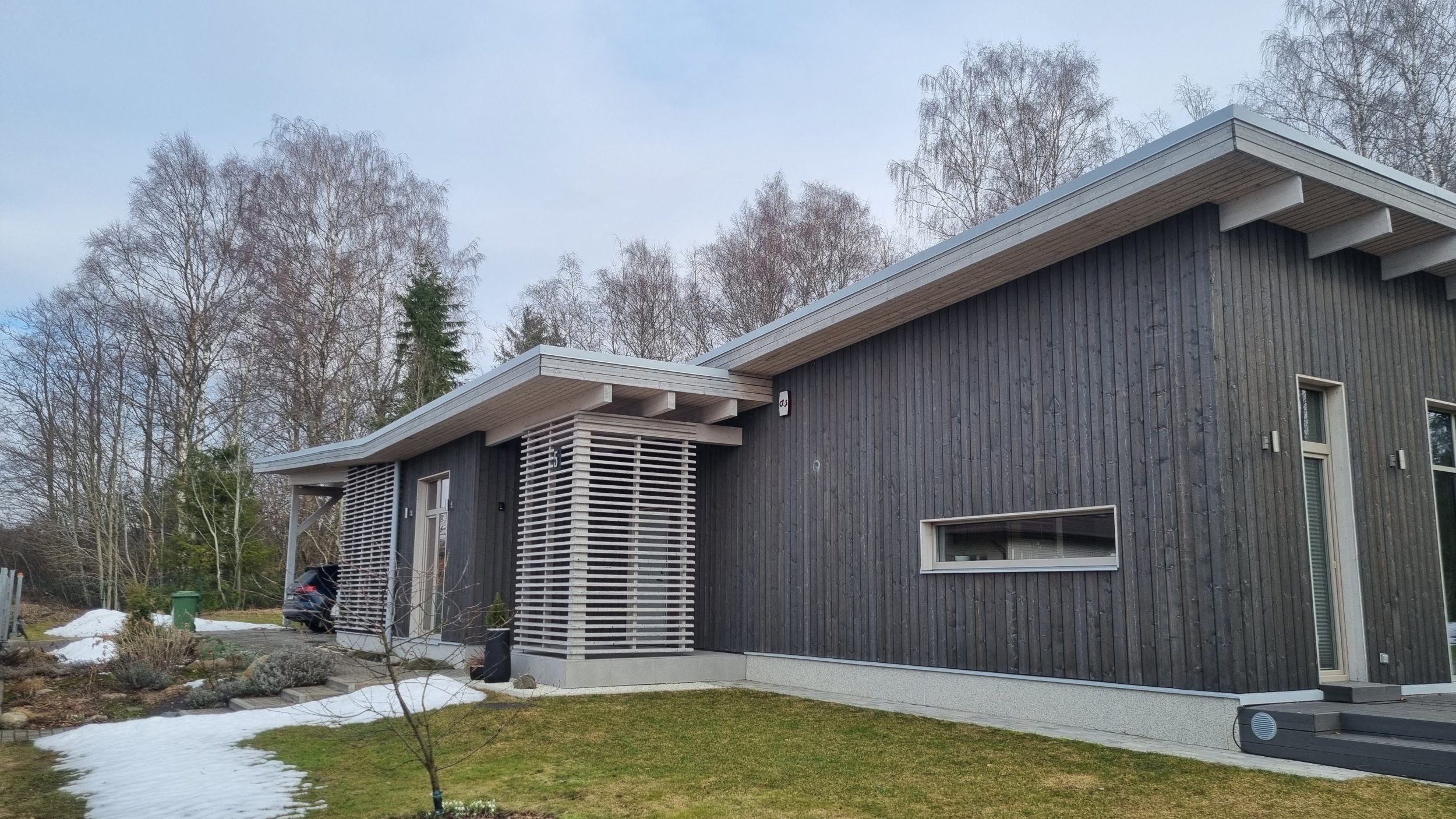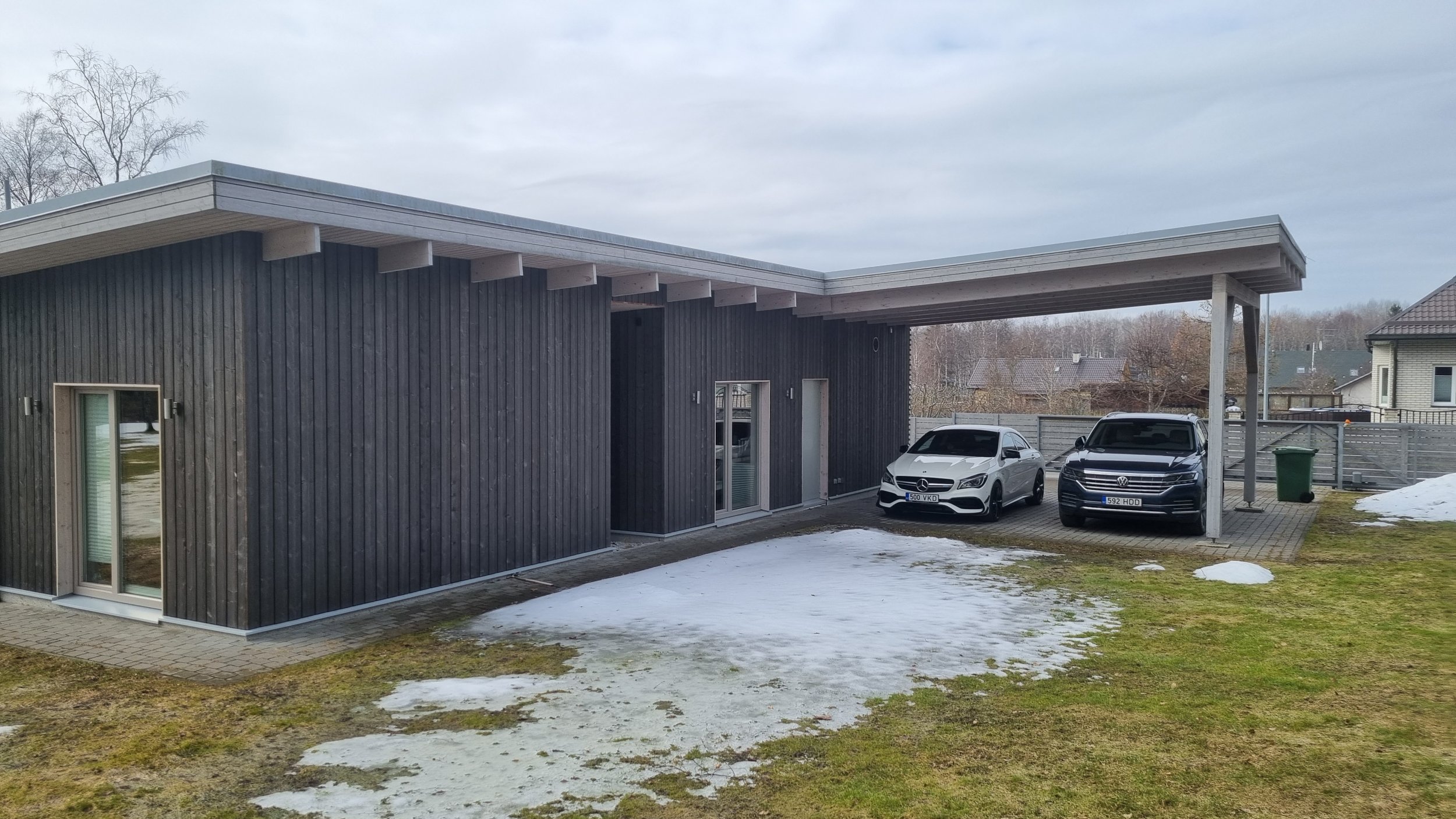 Ühekordse puitmaja fassaadi üle värvimine Remmers HK Lasur lasuurvärviga, 2 tooni . Fassaad on esmakordselt värvitud 2015.aastal. Laudise lauad on peensaetud, sõrestiku lauad ja katusetalad hööveldatud. Maht kokku 362 m2, millest musta voodrilauda 188 m2 ja heledat pinda 174 m2.