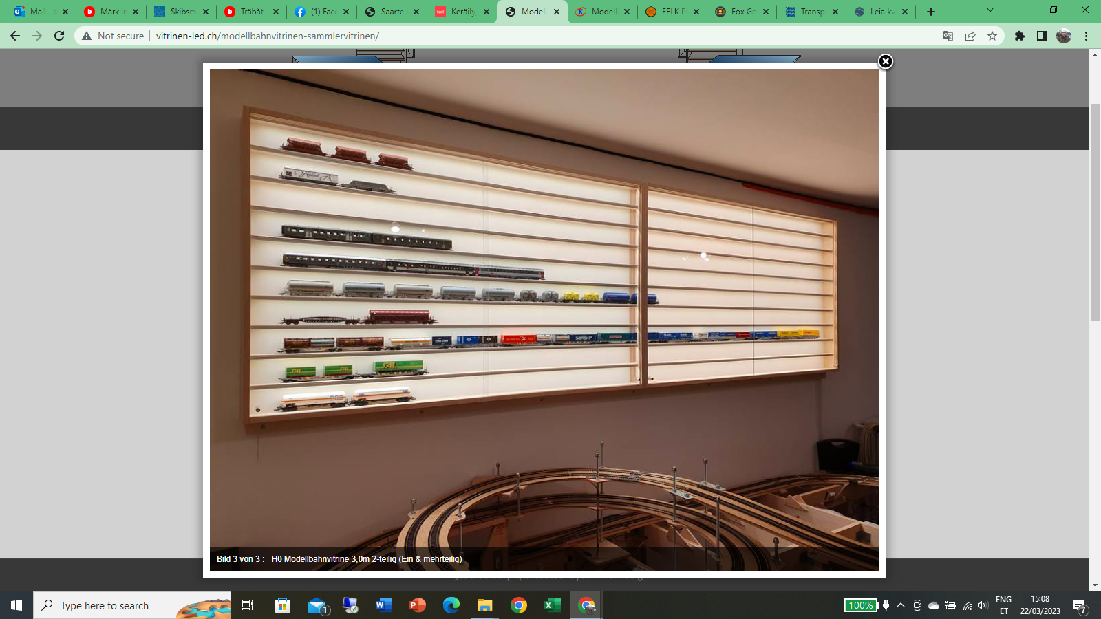 Otsin meistrit, kes valmistaks valgustusega seinavitriini mudelrongidele. Suurus võiks olla 1x2m (K:L). Sügavus ca 7 cm. Lisan foto näiteks. Klaasliuguksed on vajalikud ja peavad olema lukustatavad. Paigaldust ja transporti ei vaja.