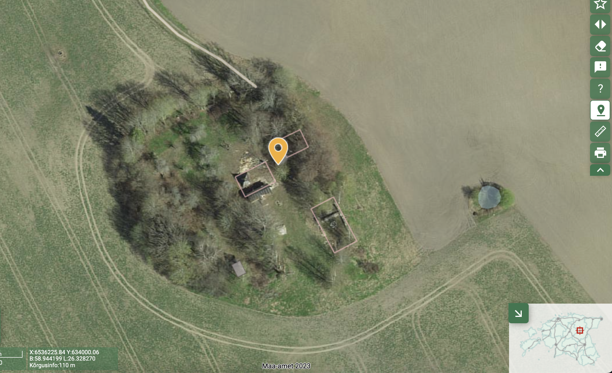 Pildil asukoht ja praeguse puurkaevu asukoht.
