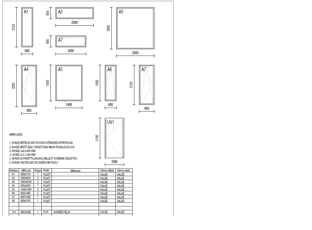| Ehitusmaterjalid: | Töö tegija poolt |