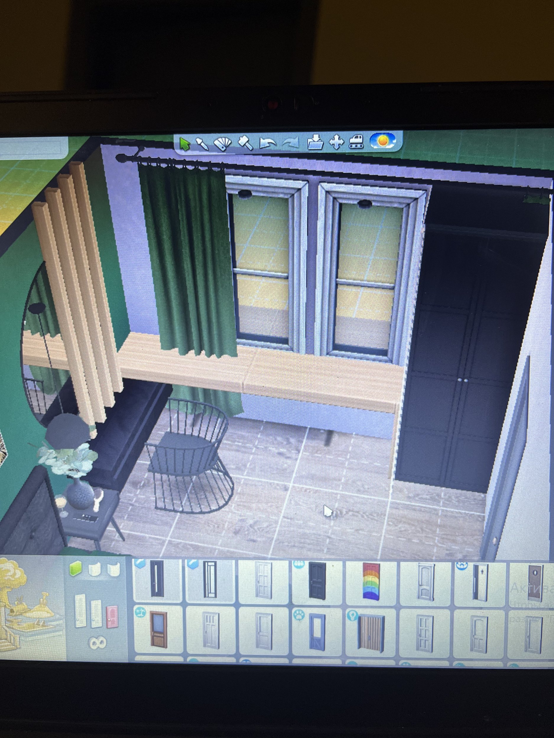 Väiksem laua osa ja kapp võiksid olla tumehallid/mustad. Kappis riiulid. Akna all olev laud puidust.