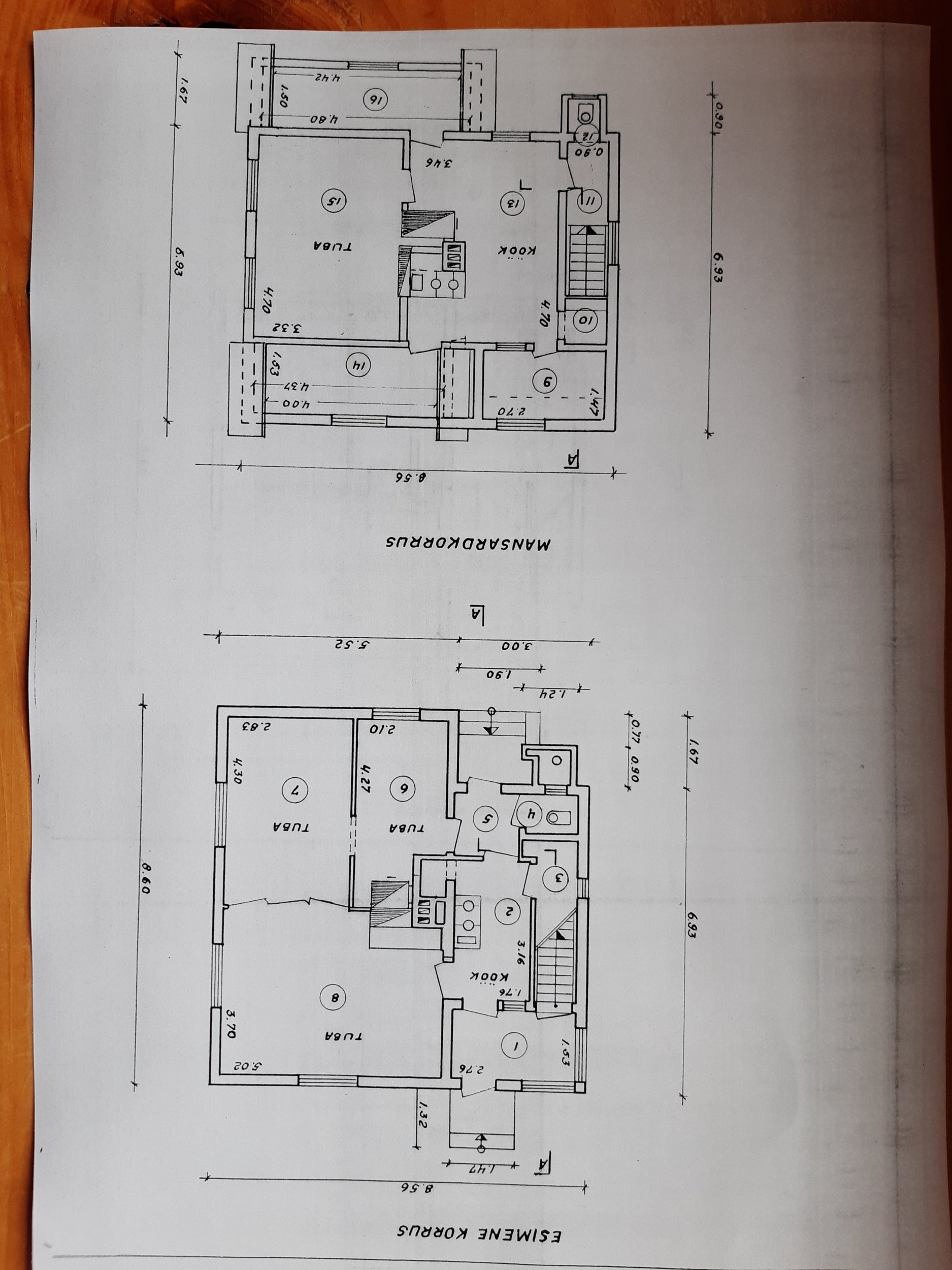 Fotodel lisatud maja plaanid, mille põhjal saab pakkuja hinnata töö mahtu ruutmeetrites (maja mõõdud).