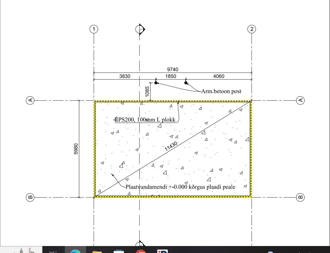Plaatvundamendi rajamine. Mõõdud 5980 x 9740 . EPS plaatidest . Sokli L-plaat 400 mm. Põrandakütet pole vaja. Süvendi sügavus 500mm. on OK. Kanalisatsiooni ja veetoru paigaldus põrandasse.