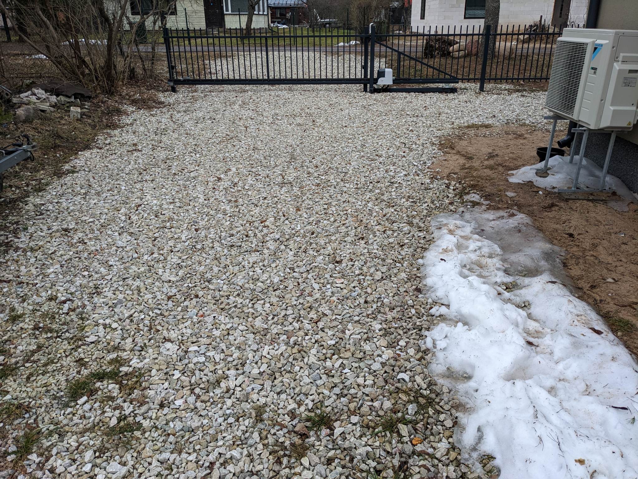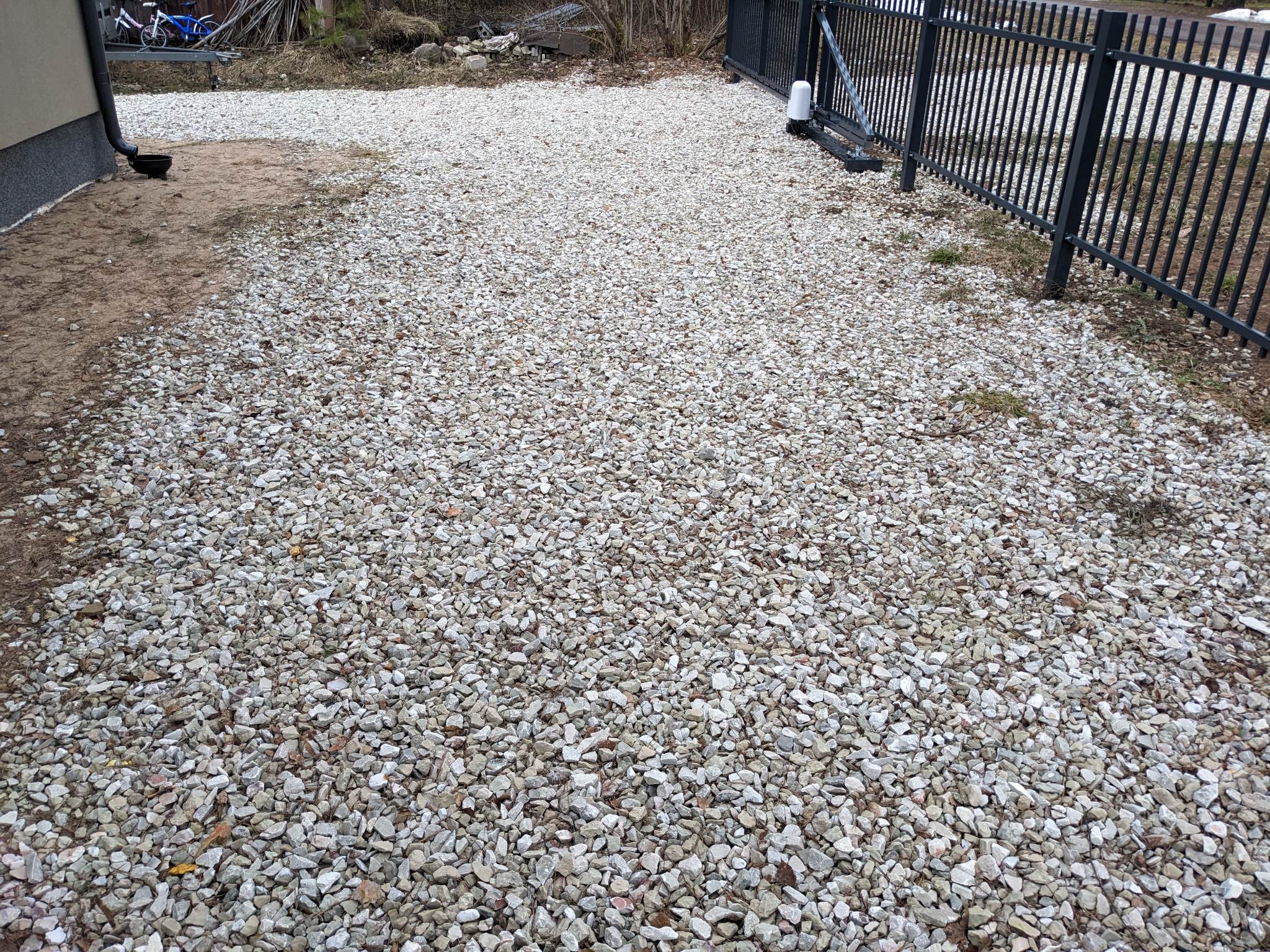 Paigaldada tänavakivid ja äärekivid parkla ja maja ümber. Sissesõiduteel ning maja ees (hinnanguliselt 50% kogu kivialast) väljakaeve tehtud ning killustikuga täidetud. Osa alast on kaetud õhukese kihi killustikuga ning seal vaja väljakaeve teha. Pinnas kuiv ja liivane.