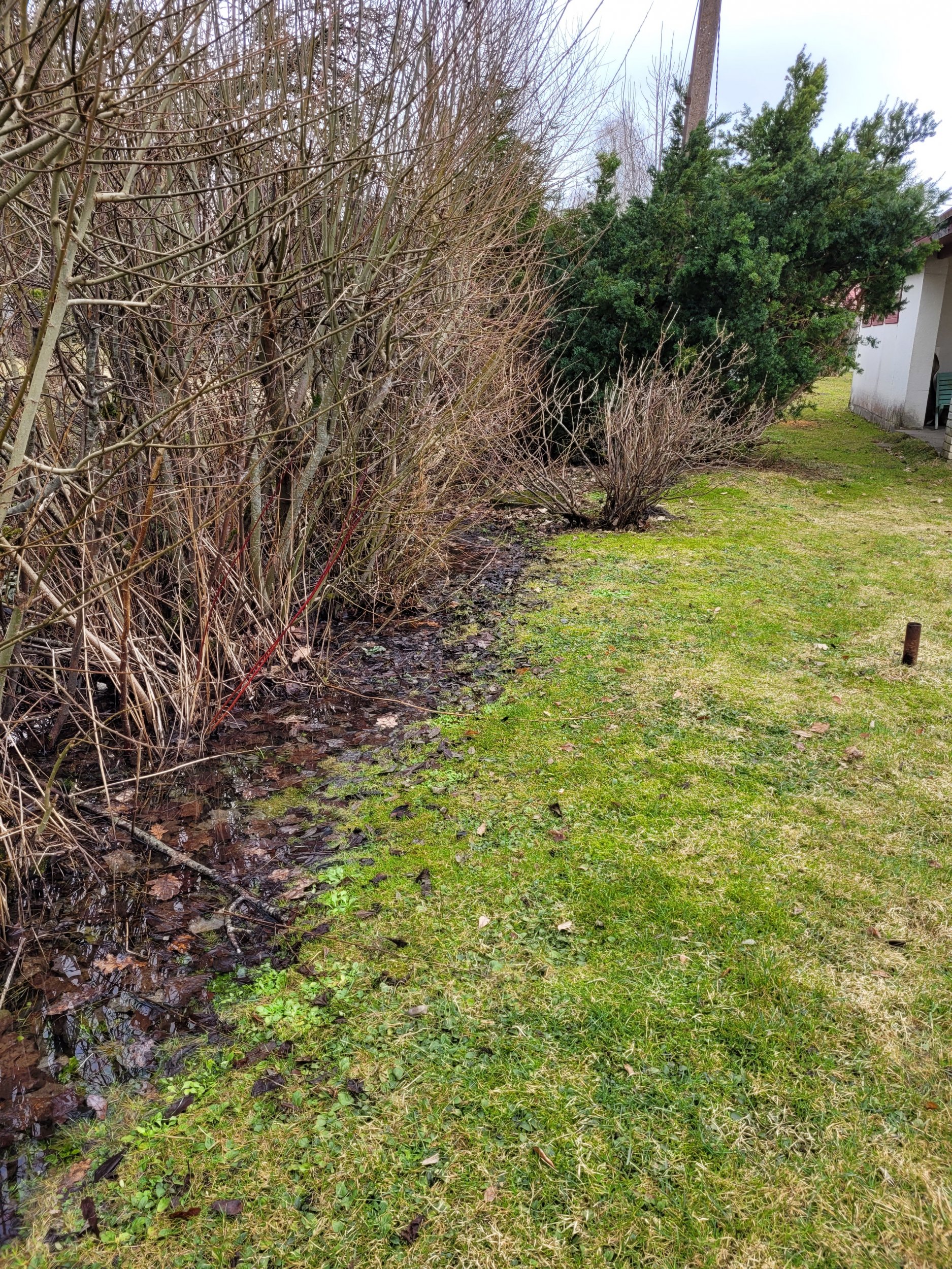 Aed läheb olemasolevale hekile võimalikult "sisse" ja asub osaliselt kraavis, ehk siis arvestada keerukamate tingimustega ning tehnika raskendatud või puuduva ligipääsuga.