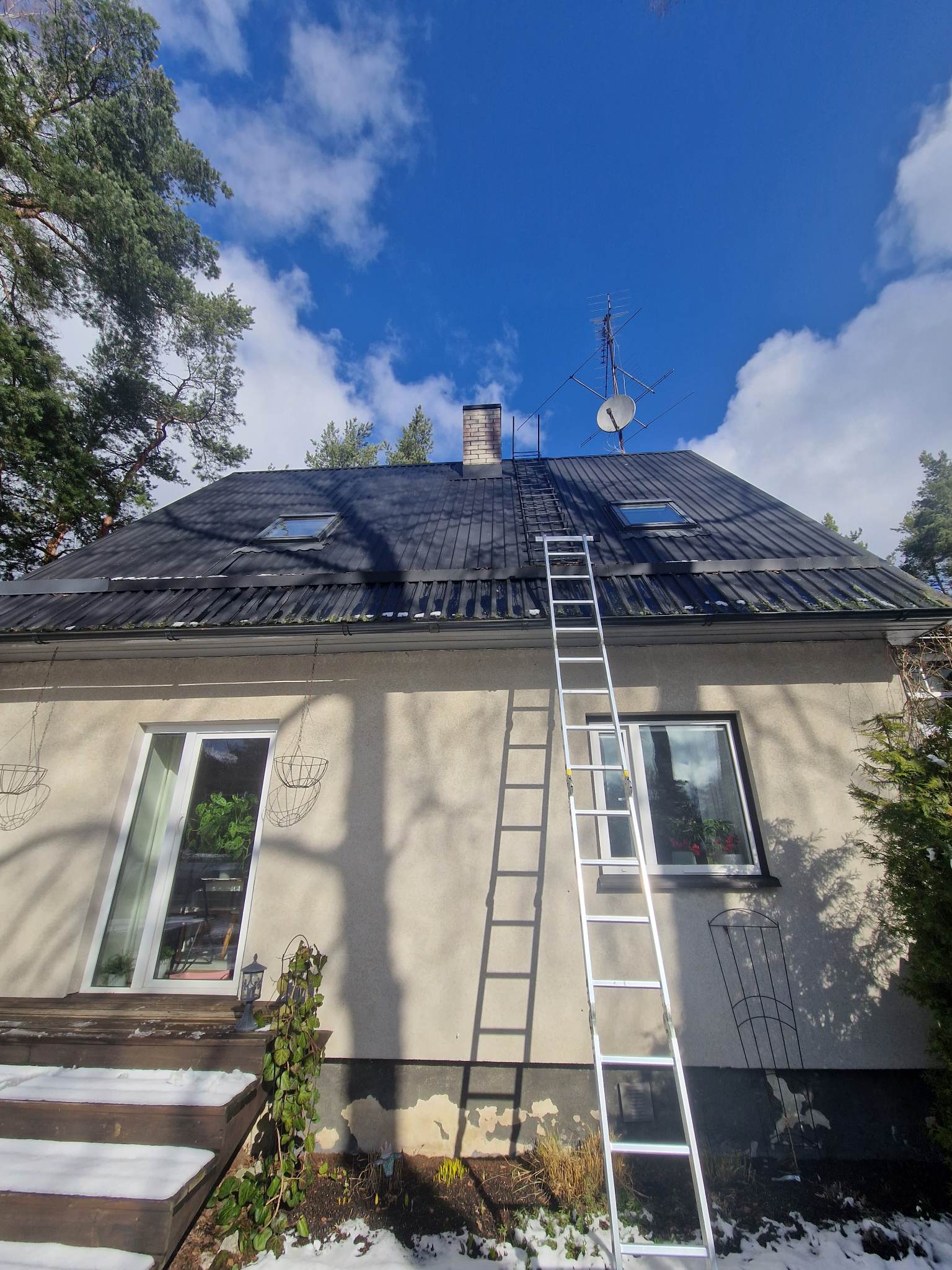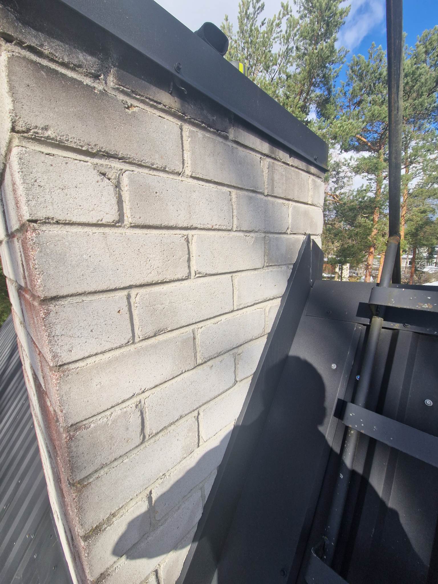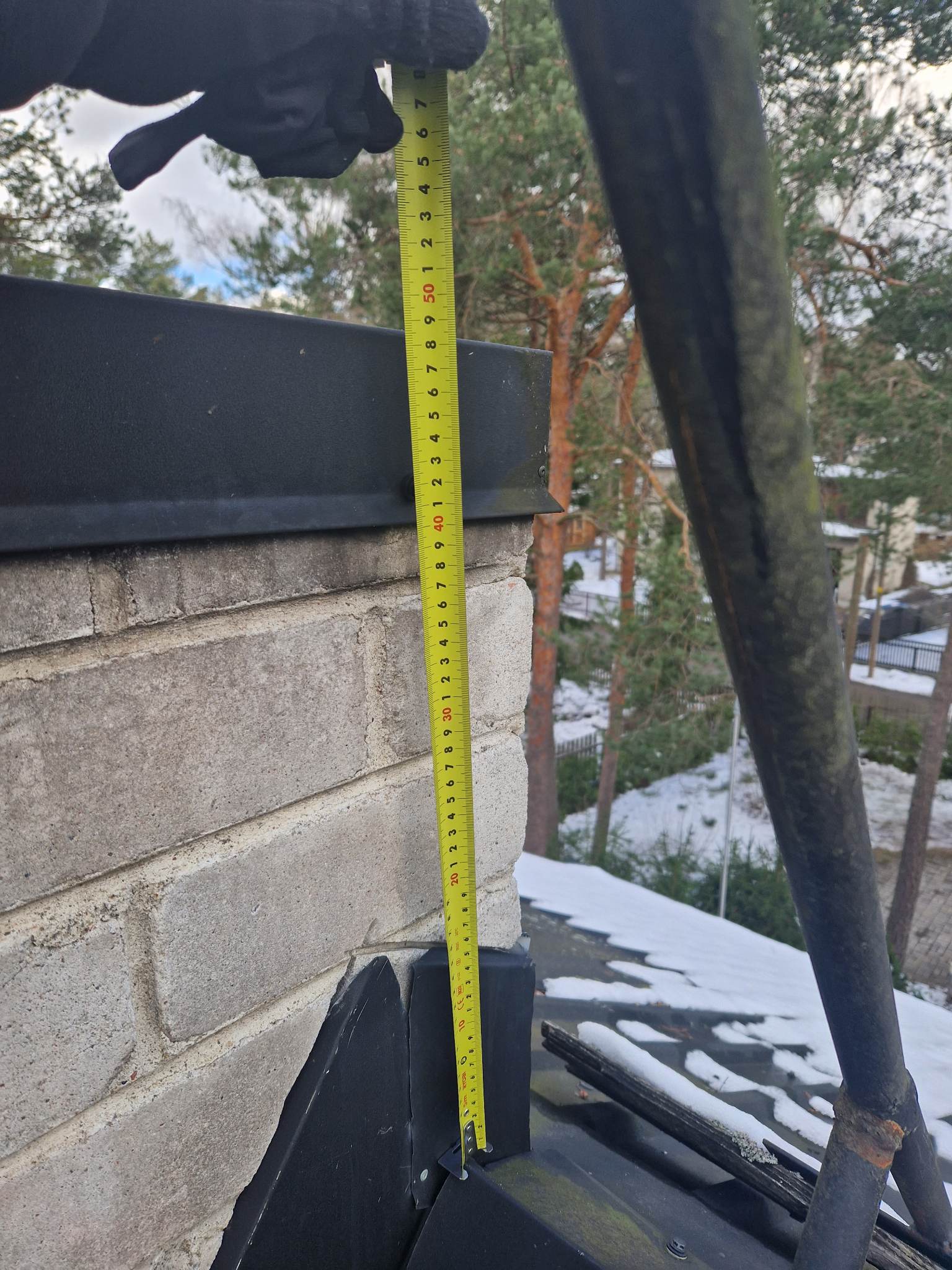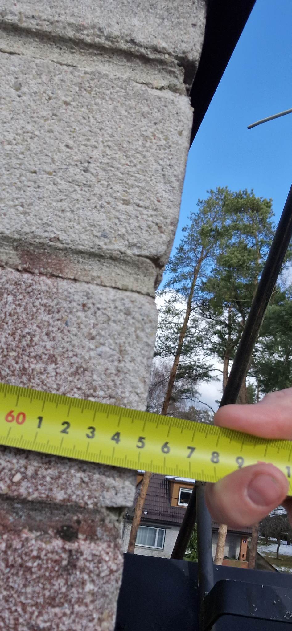 Korstna ladumine kõrgemaks. Korstna kõrgus katuseharjast hetkel napp 50cm. Vaja laduda kõrgemaks, et korstna kõrgus katuseharjast oleks vähemalt 80cm.