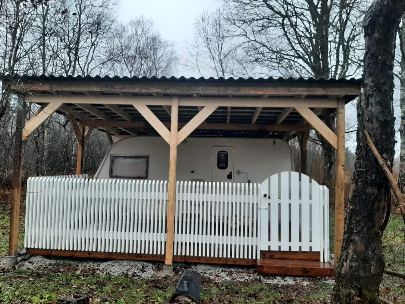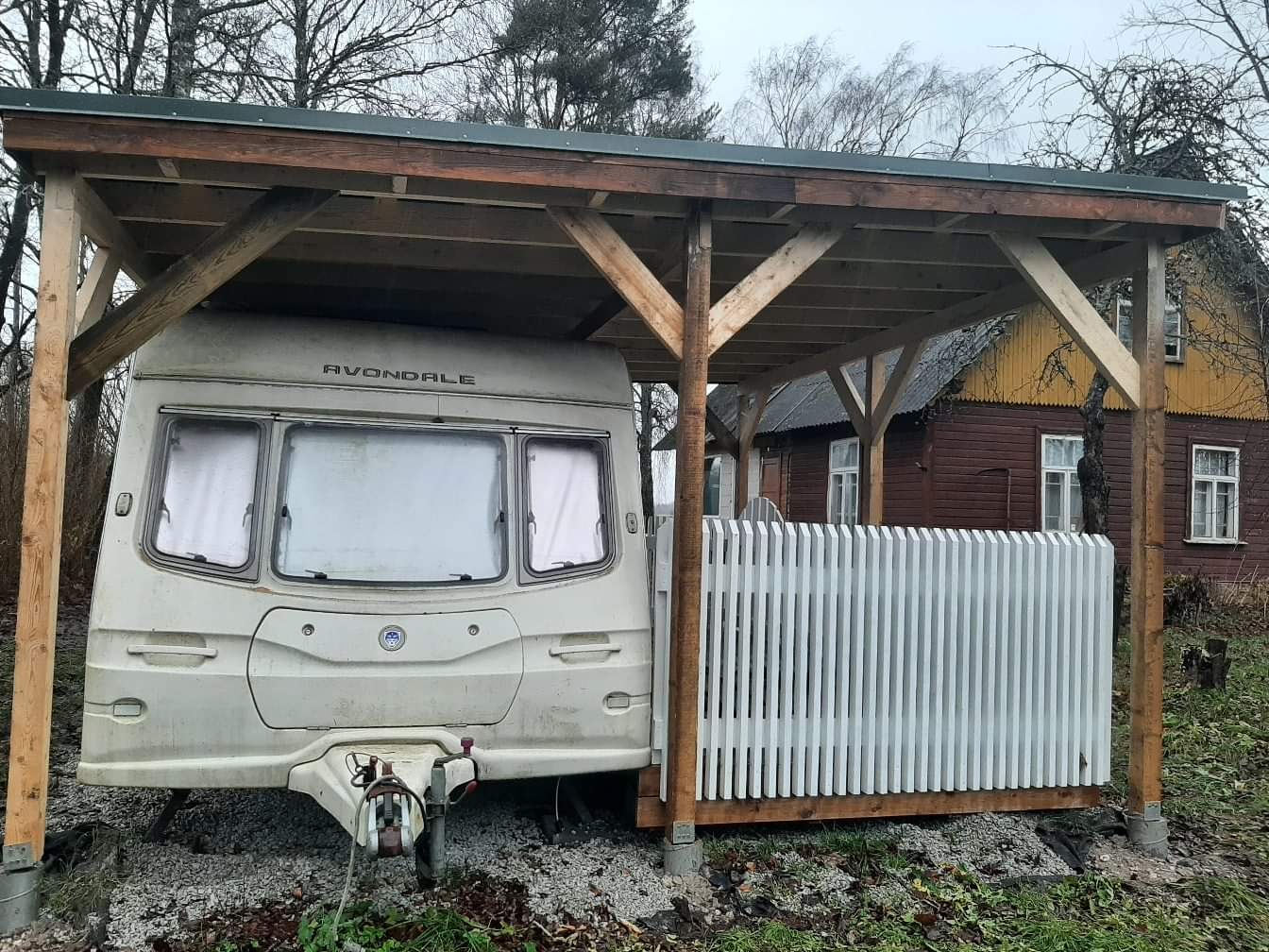 Varikatuse postide värvimine ja ümbruse katmine killustikuga.