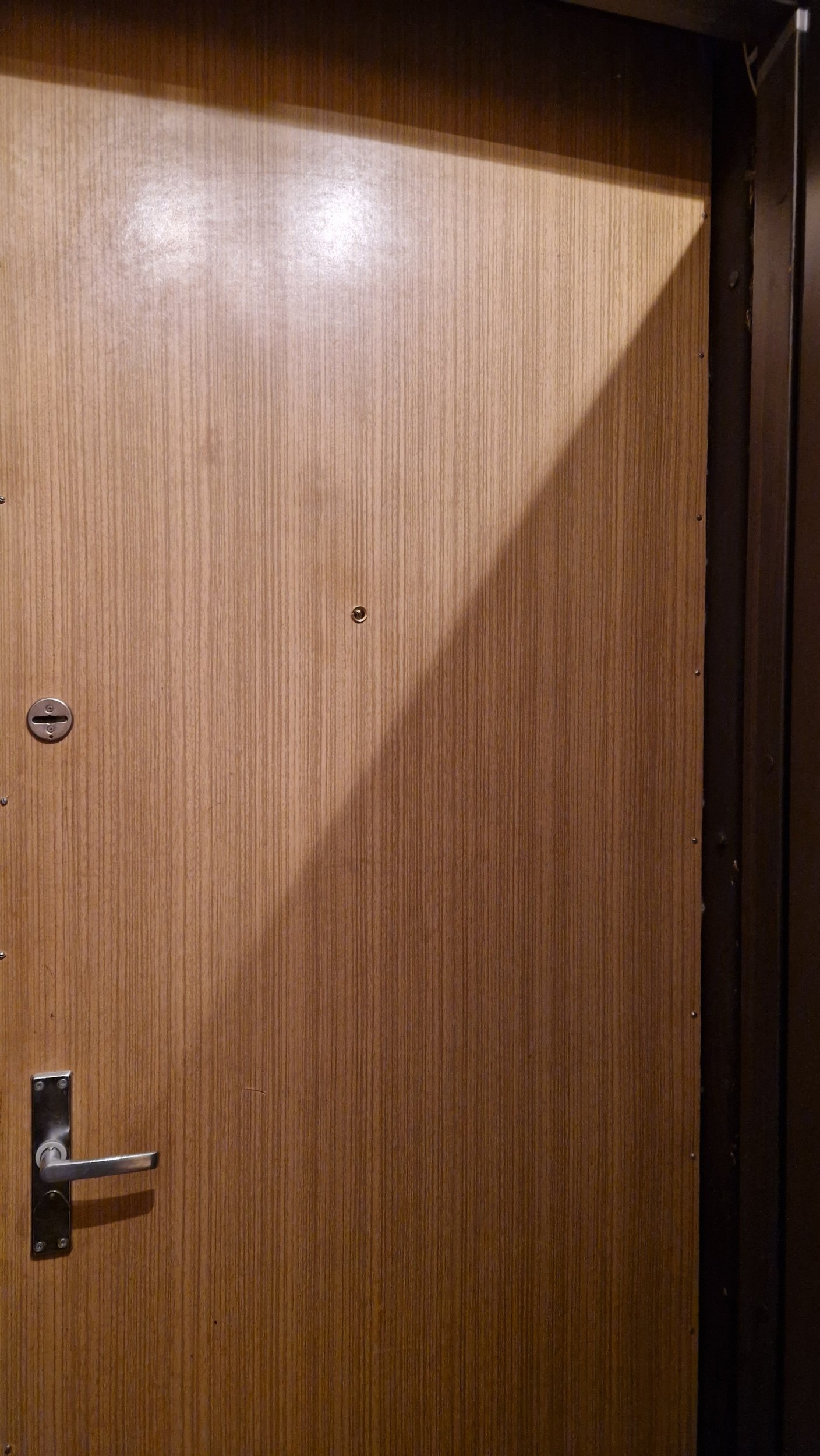 Утеплить входную железную дверь,путем снятия ДСП листа