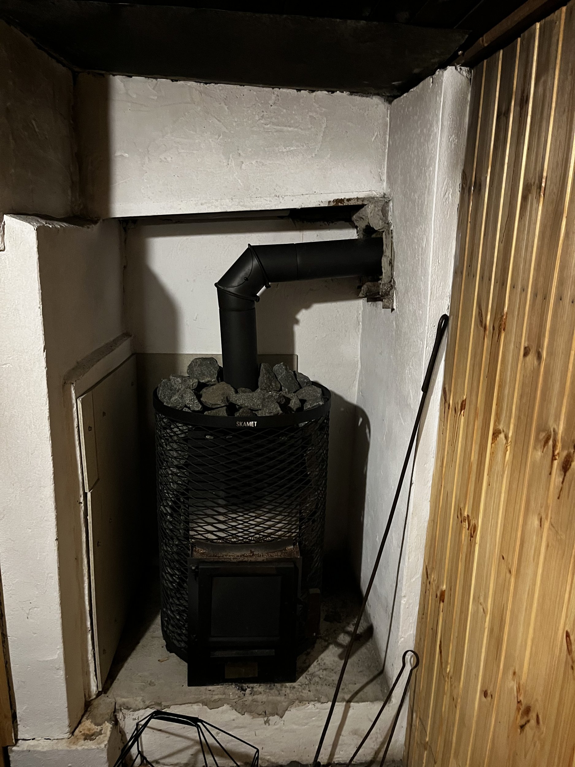 Saunal ja kaminal on üks korsten. Saunal ei ole väga hea tõmmet ja sellepärast ajab tihti sisse. Oleks vaja ehitada saunast korsten otse üles läbi katuse