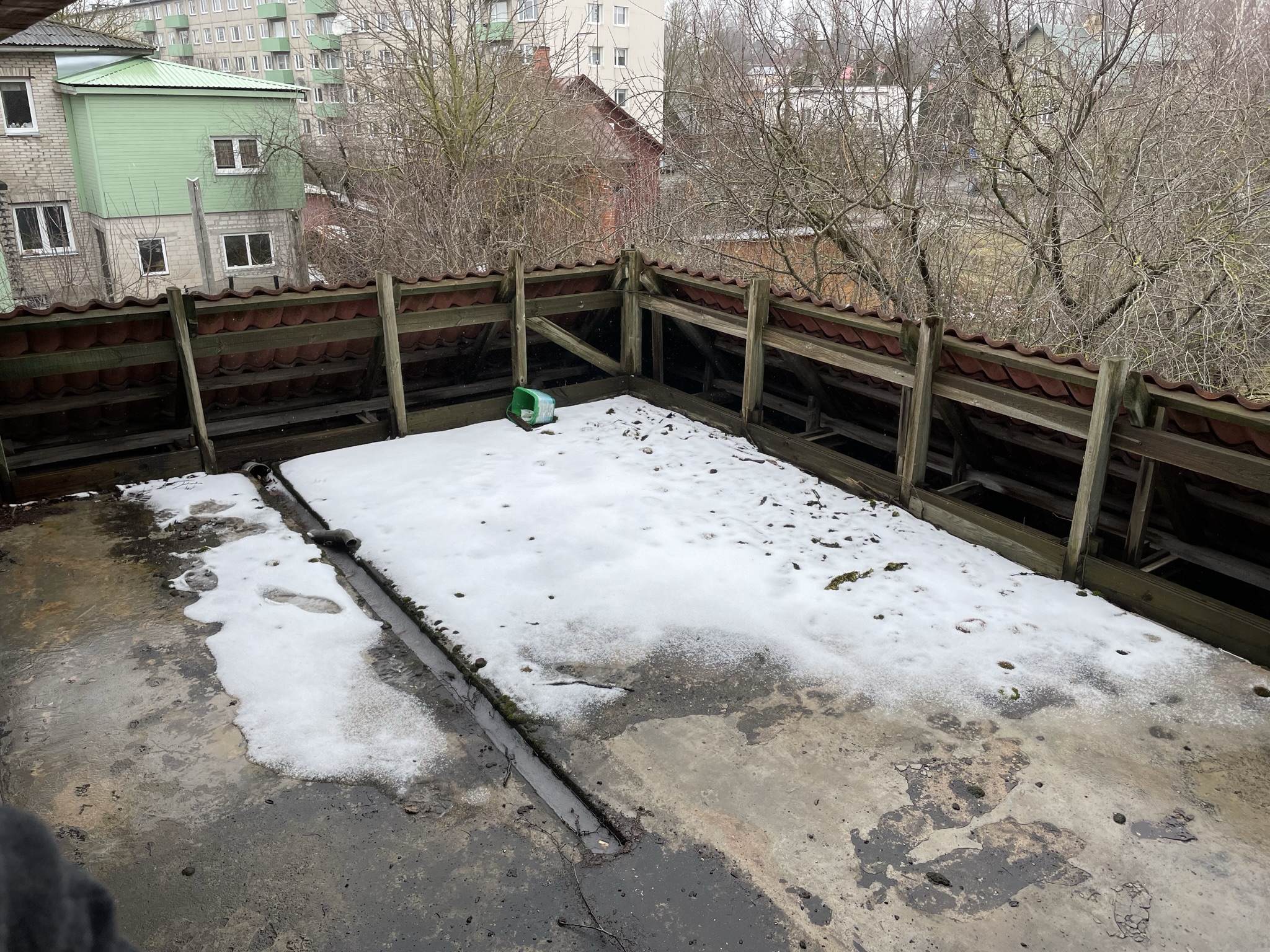 Betoonist terrassil on vaja paigaldada hüdoisolatsioon ja lahendada vihmavee äravool. Praegune äravool ei ole korrektselt liidetud ega vii ka kogunevat vett ära. Tulemuseks peab olema, et vesi ei kogune, ei tilgu tuulekasti, äravool toimib. Asendada samasugustega tuulekasti veekahjustustega osad. Palun pakkuge materjalid ja äravoolu lahendus. Töö tegemise aeg kokkuleppel.