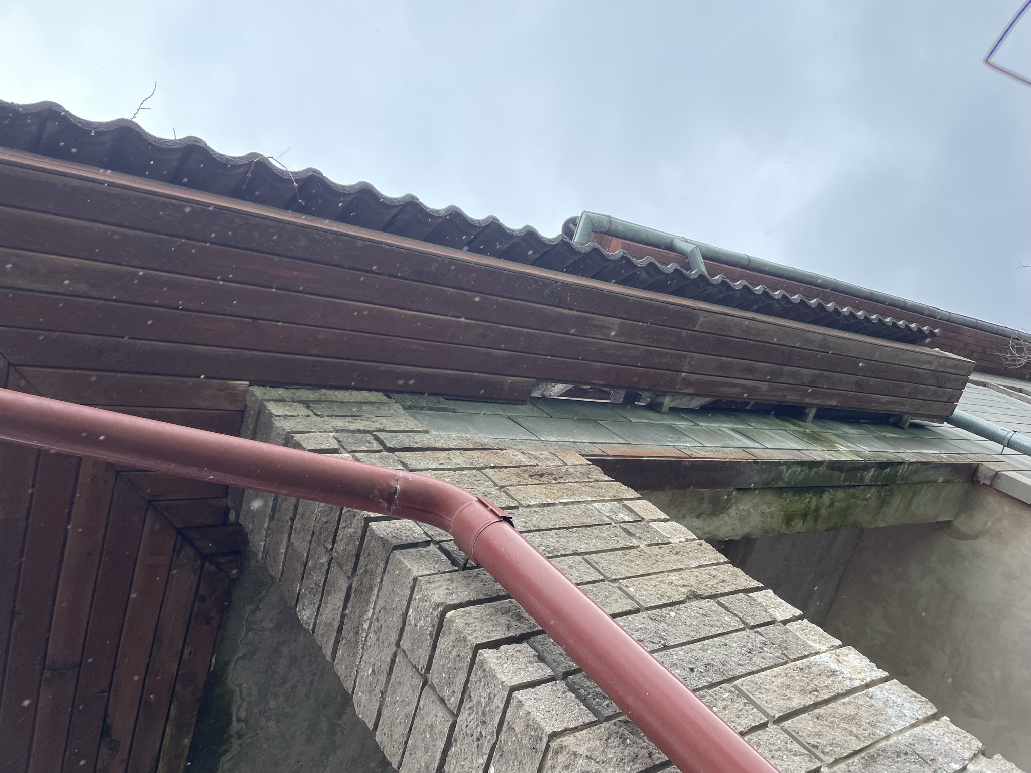 Uus pvc kate, puidust parapett, müts plekk peale , roostevaba äravoolu kaev, kallete korrigeerimine ja räästa laudade osaline vahetus