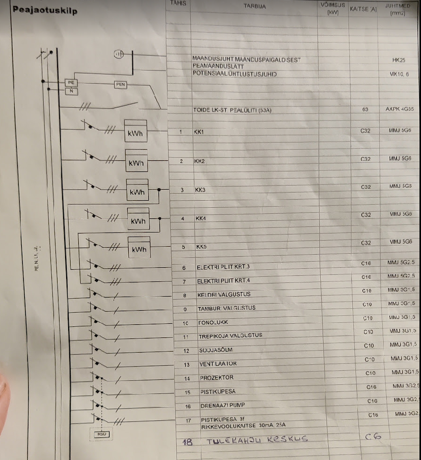 kus sisemine jaotuskilp 5 majasisese arvestiga.