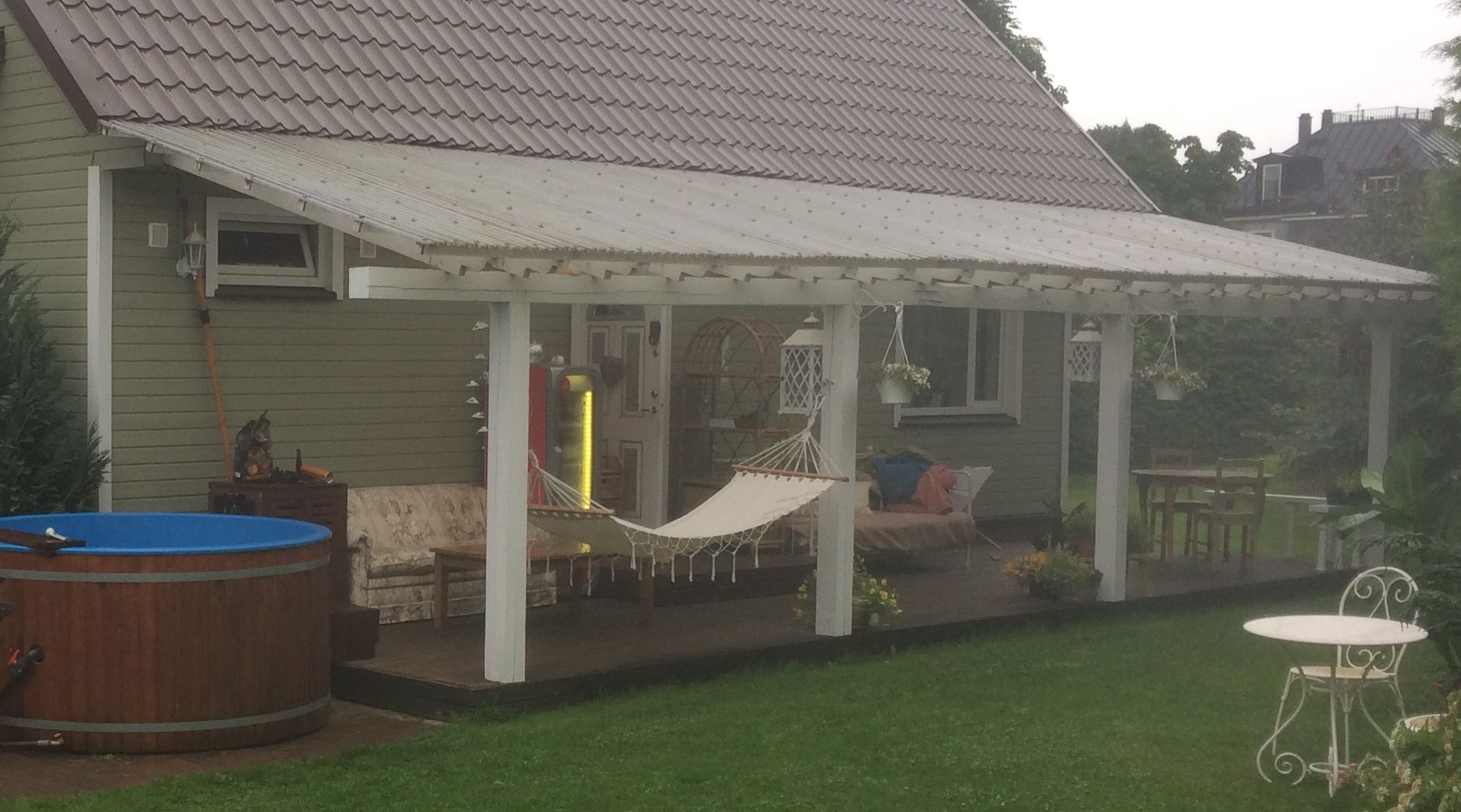 Esimesed kaks pilti on praegusest varjualusest. Ülejäänud kaks pilti on näidispildid, milline uus varjualune ja terrass peaksid olema.