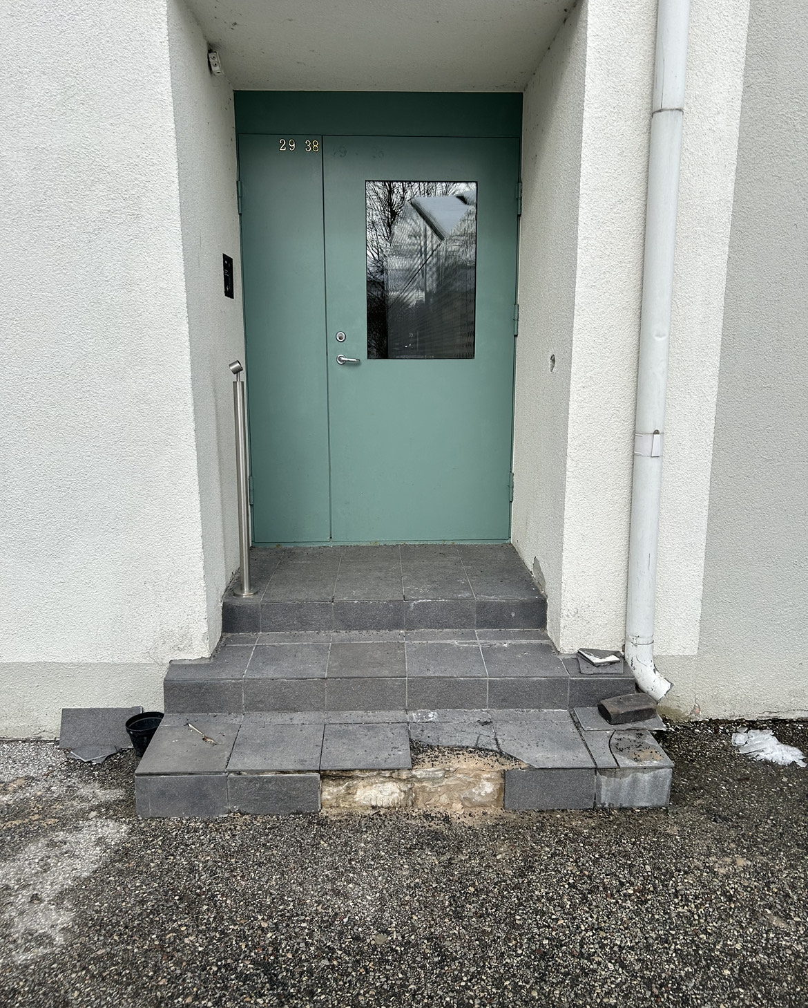 Trepikoja treppide ehitamine. Hetkel on plaaditud trepid, aga soovime need katta pesubetooniga. Treppe on 5 ja need on erineva suurudega. 2 treppi on suurusega ca 2,8 ruutmeetrit, 2 treppi suurusega 4,6 ruutmeetrit ja 1 trepp suurusega 1,6 ruutmeetrit.