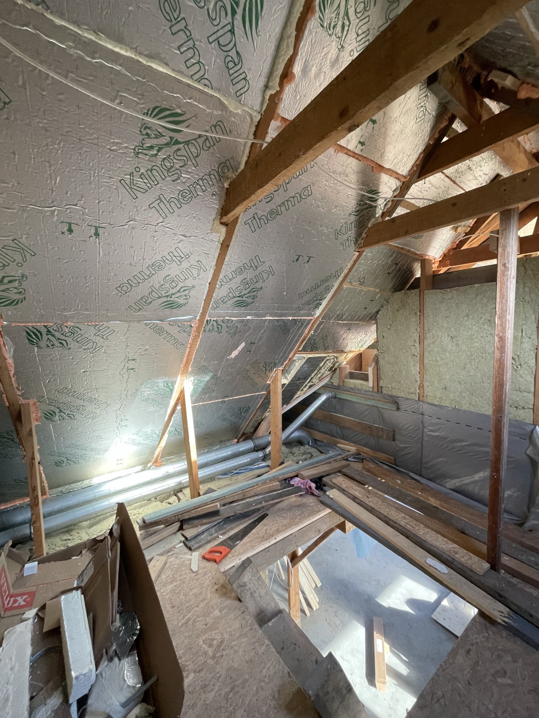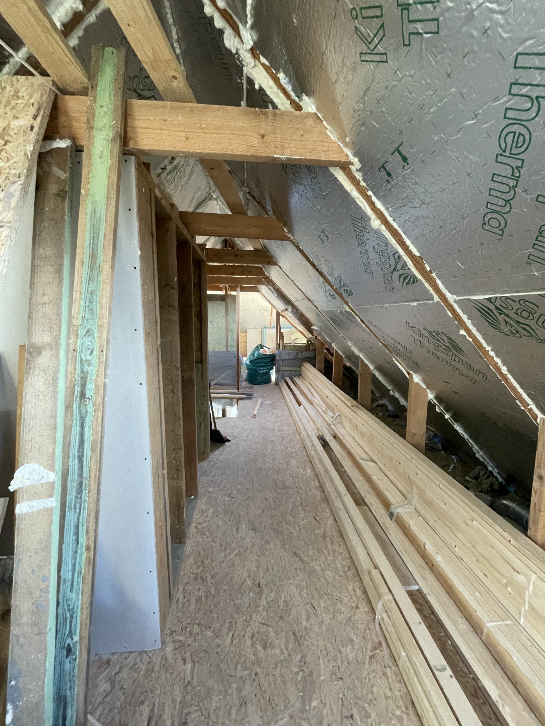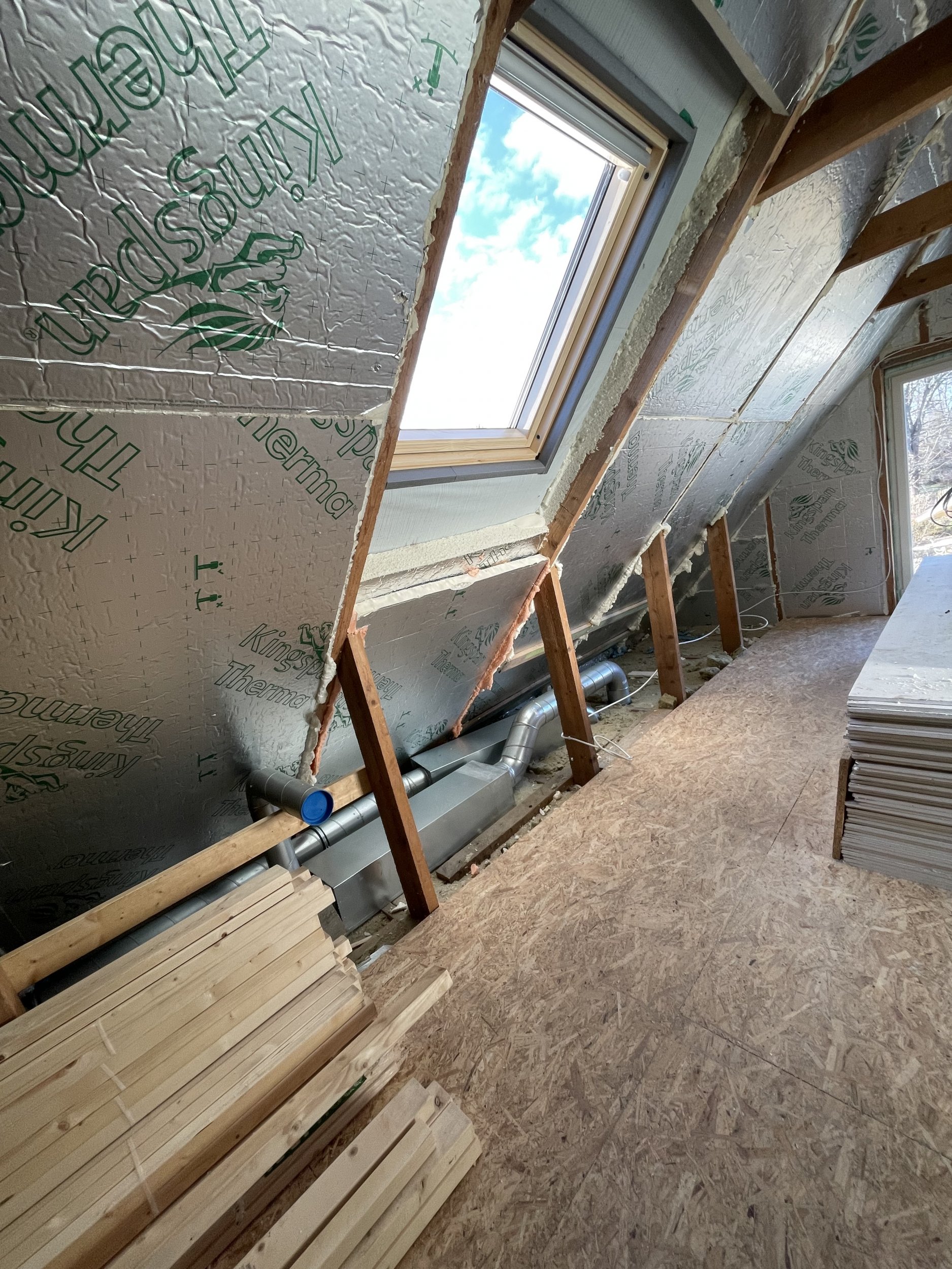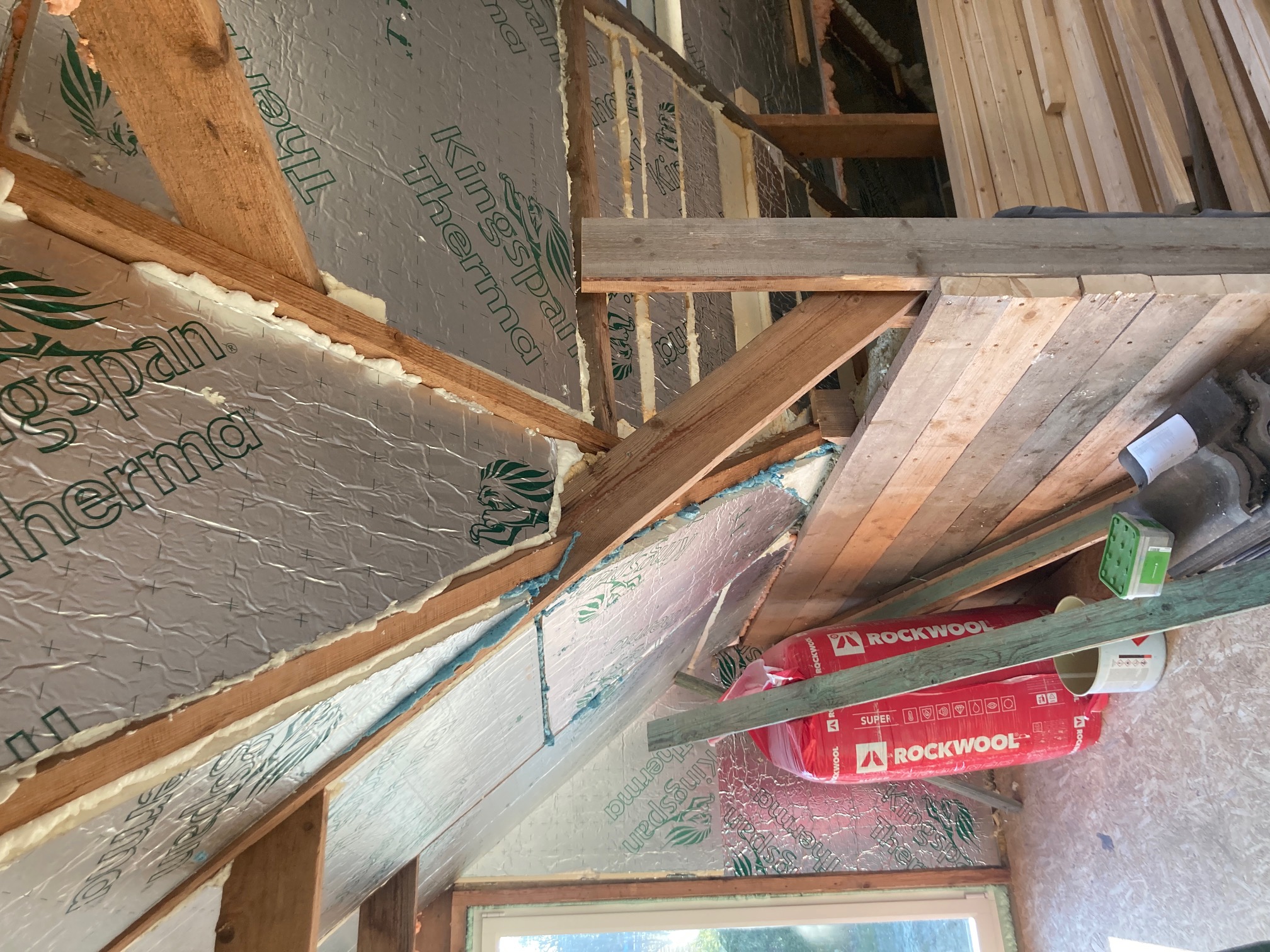 Töö mahtu kuulub ka 50 mm villa ja aurutõkkekile paigaldus ning kipsplaatide paika panek karkassile (mõne kruviga kinnitamine) ning aknapalede tegemine.