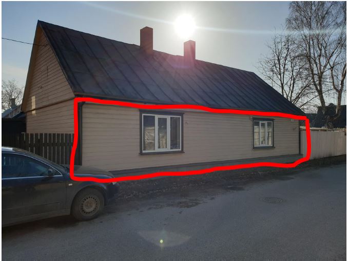 Kahel seinal vana laudise eemaldamine, roovitus 5 cm villaga, tuuletõkkekangas, roovitus, uus voodrilaud (2 korda värvida, värv tellija poolt). Külgmise seina pindala 30 m2 (miinus kaks akent), otsmine sein 15 m2 (ilma akendeta).