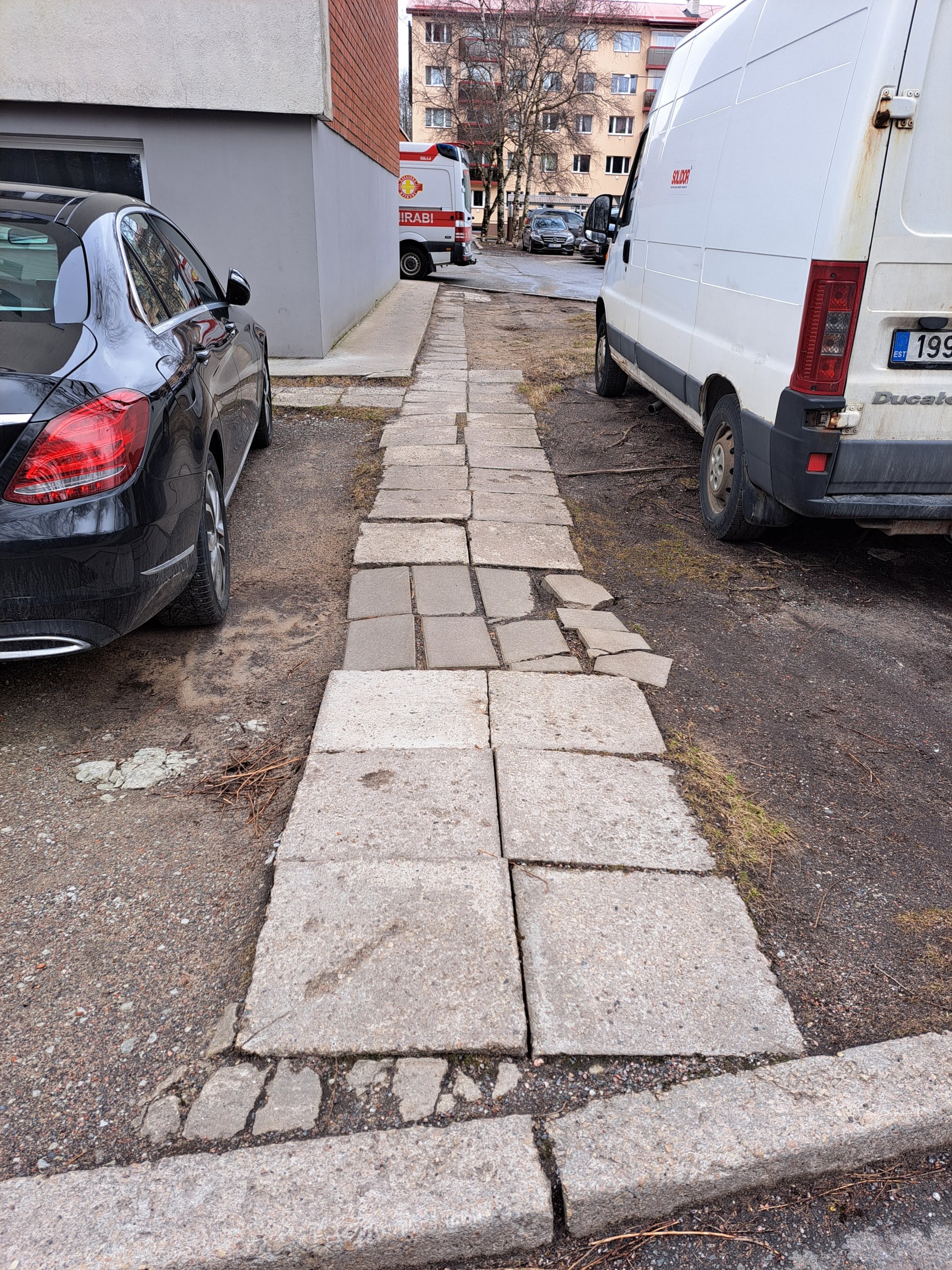 Vanad betoonplaadid tuleb lammutada. Selle asemel ehitada betoonkattega kõnnitee laiusega 1,5 m j pikkusega 18,0 m. Hoone ümber on juba olemas betoonsillutis, seda tuleb säilitada.