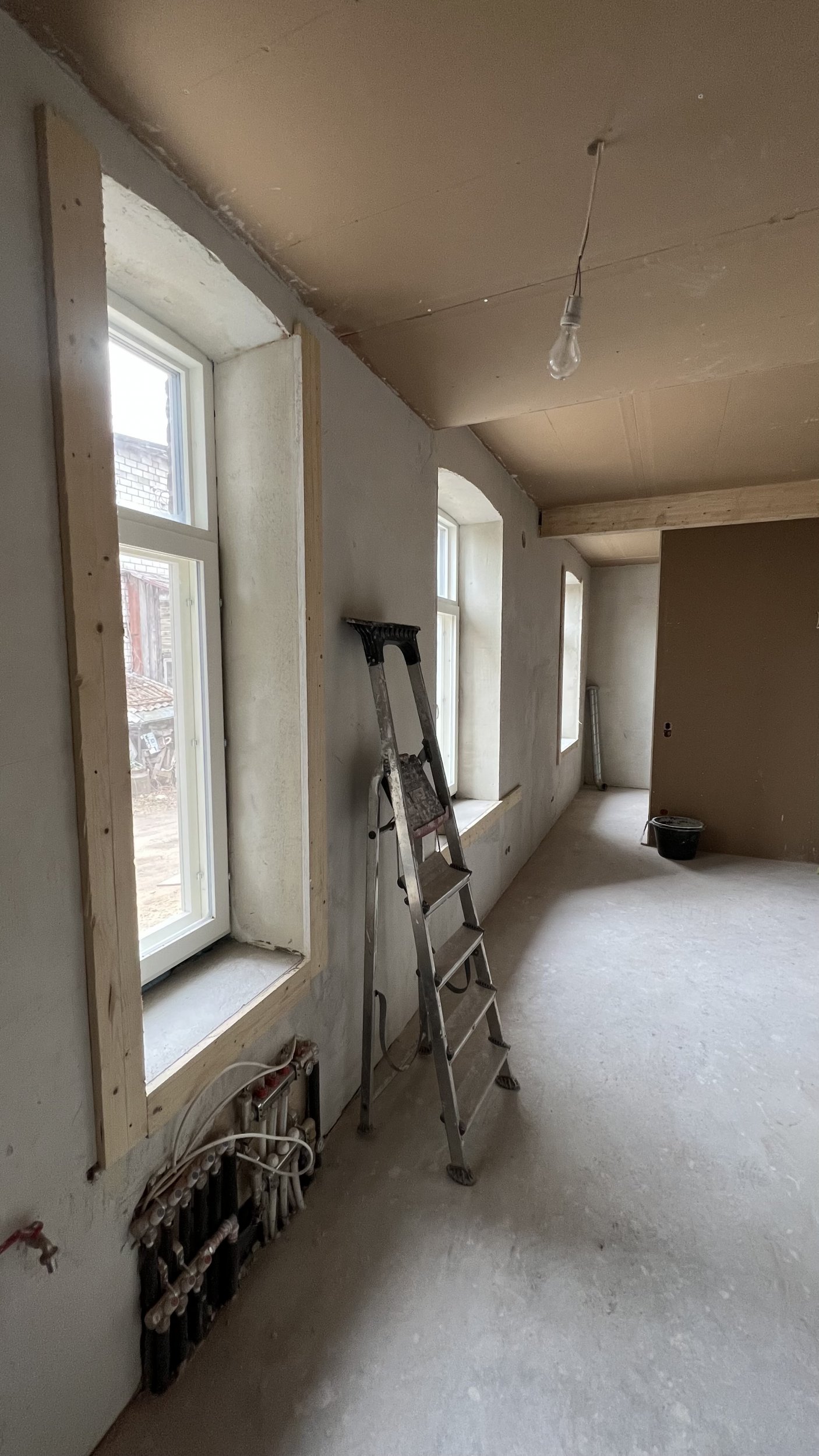 Seinete. lae, aknapõskede pahteldus 2 x ja lihvimine. Pahteldamispinda kokku 120 m2 . Korter 31 m"