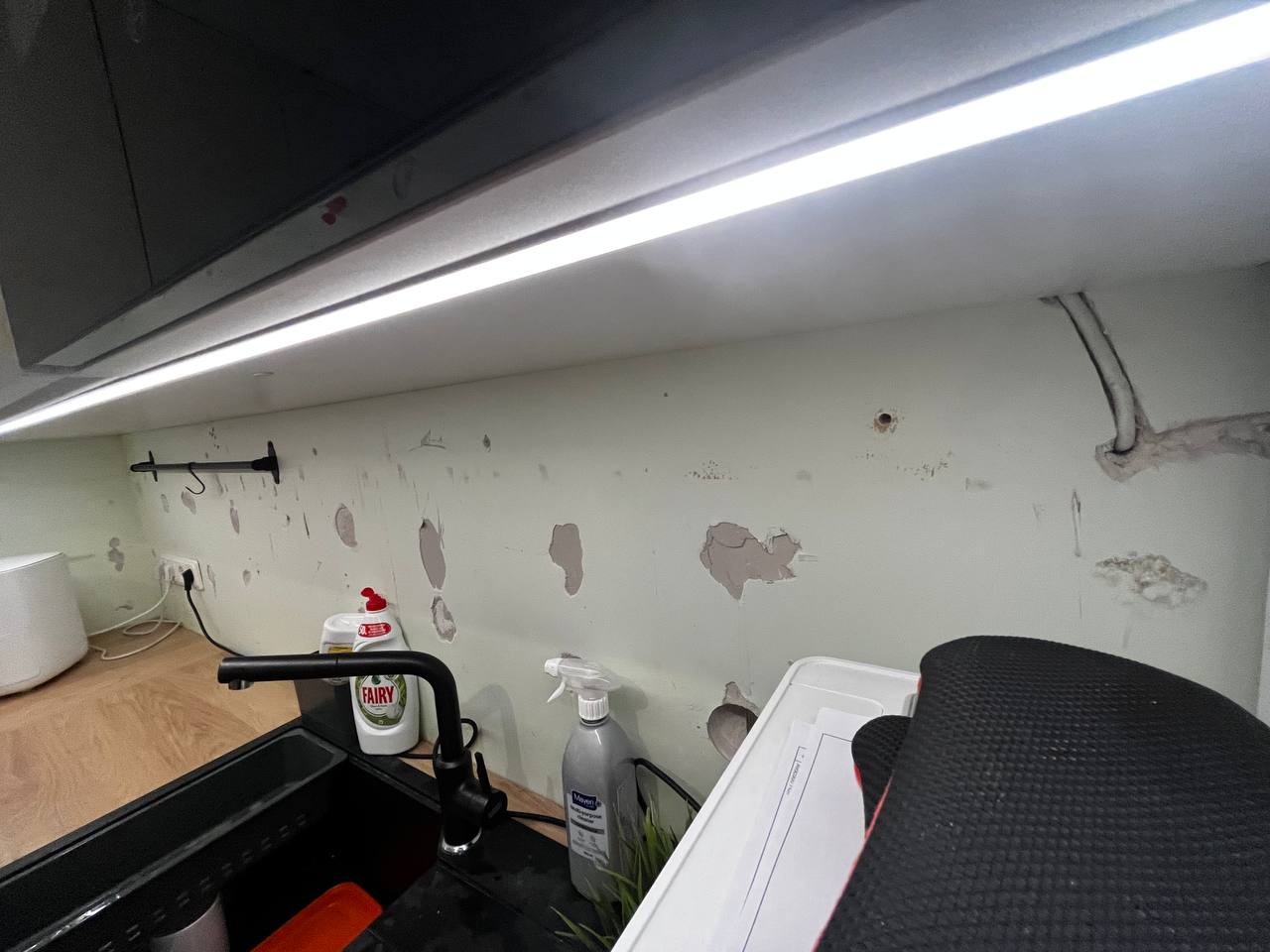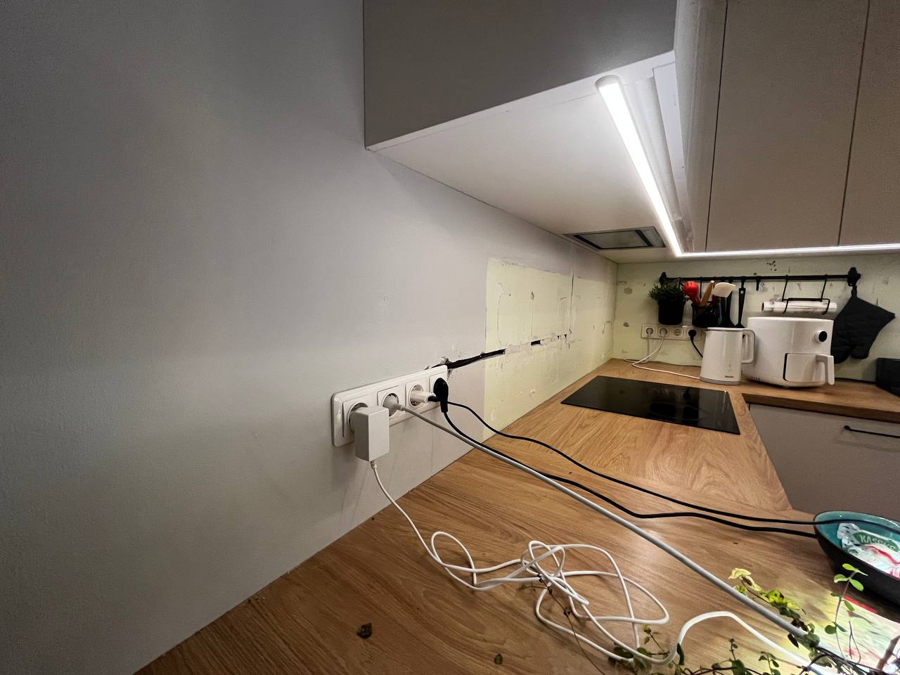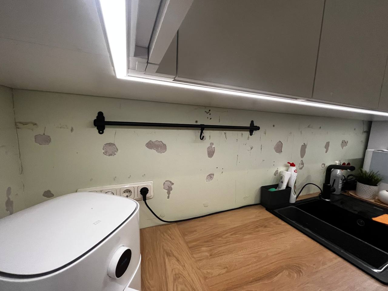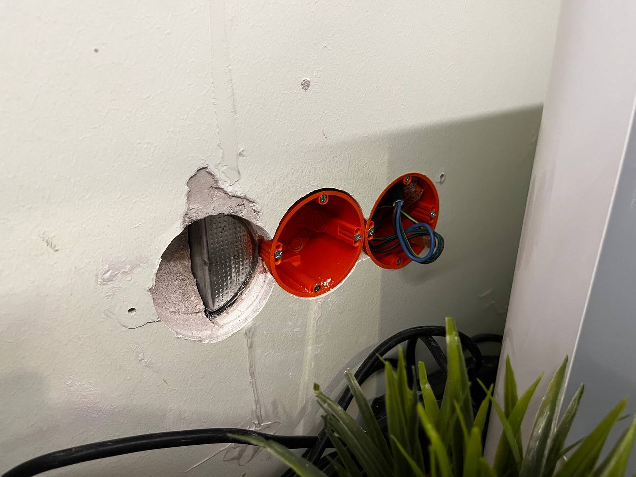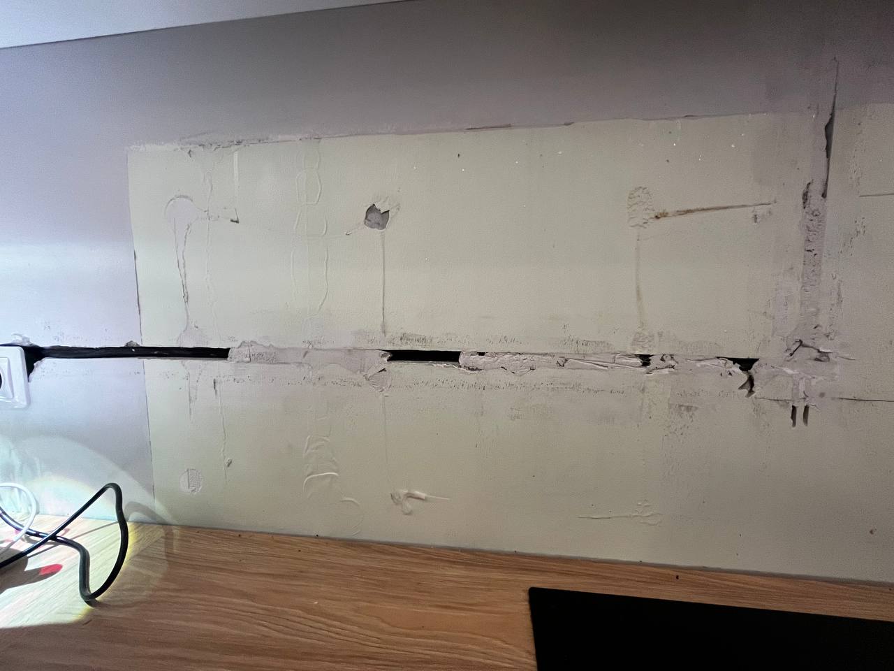 Vajalik oleks ka krohvida, et augud katta ning ühendada ka stepslid seina. (Juhe on tõmmatud). Töö tegemisel on vajalik ka plaate lõigata. Omal vahendid puuduvad.