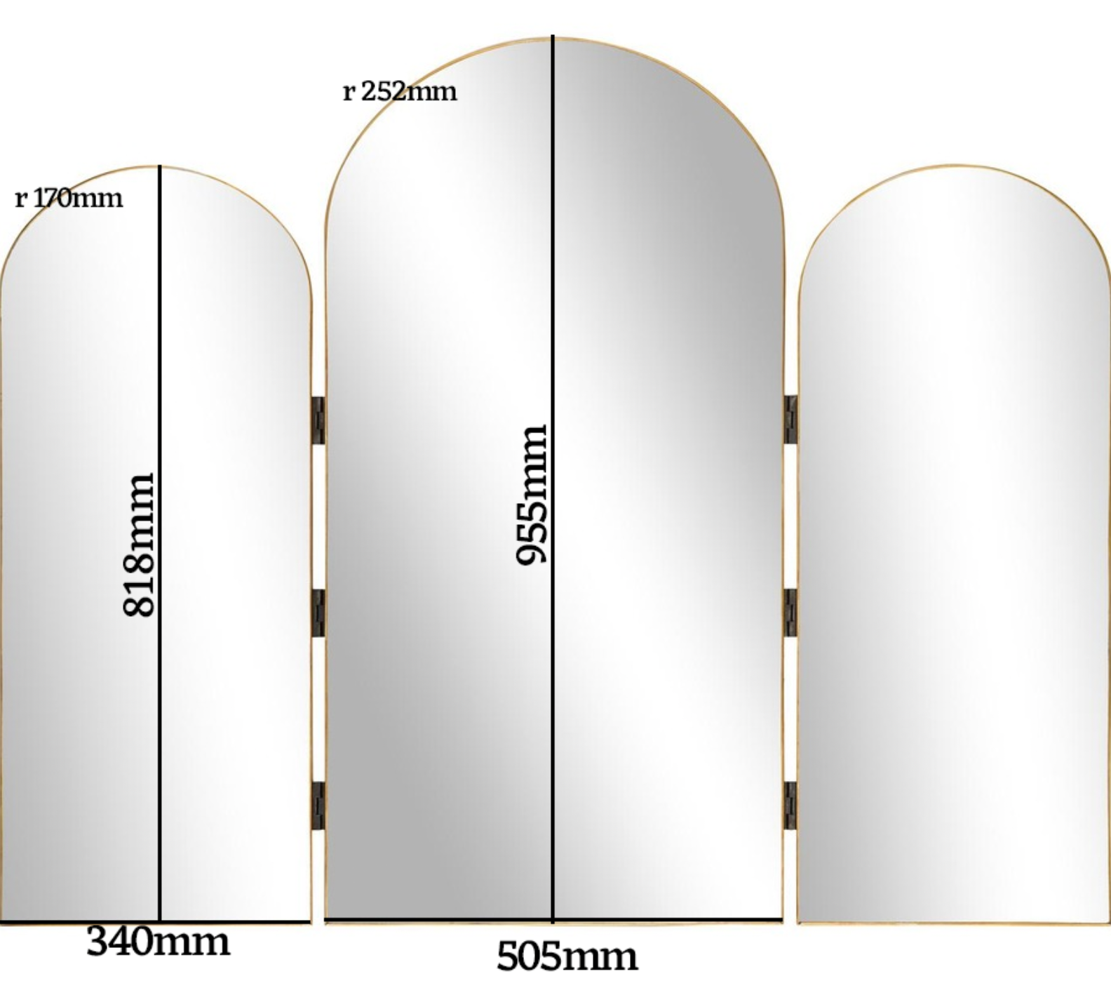 Meil oleks vaja kolmele peeglile panna taha puitplaat ja peenike messingikarva raam ümber, mis paar kuni 5 milllimeetrit peeglist eespool oleks. Avatud ka sarnastele alternatiividele. Kolm peeglit ühendatakse hingedega (iga vahele 4), nii et moodustuks kolmeosaline peegel.