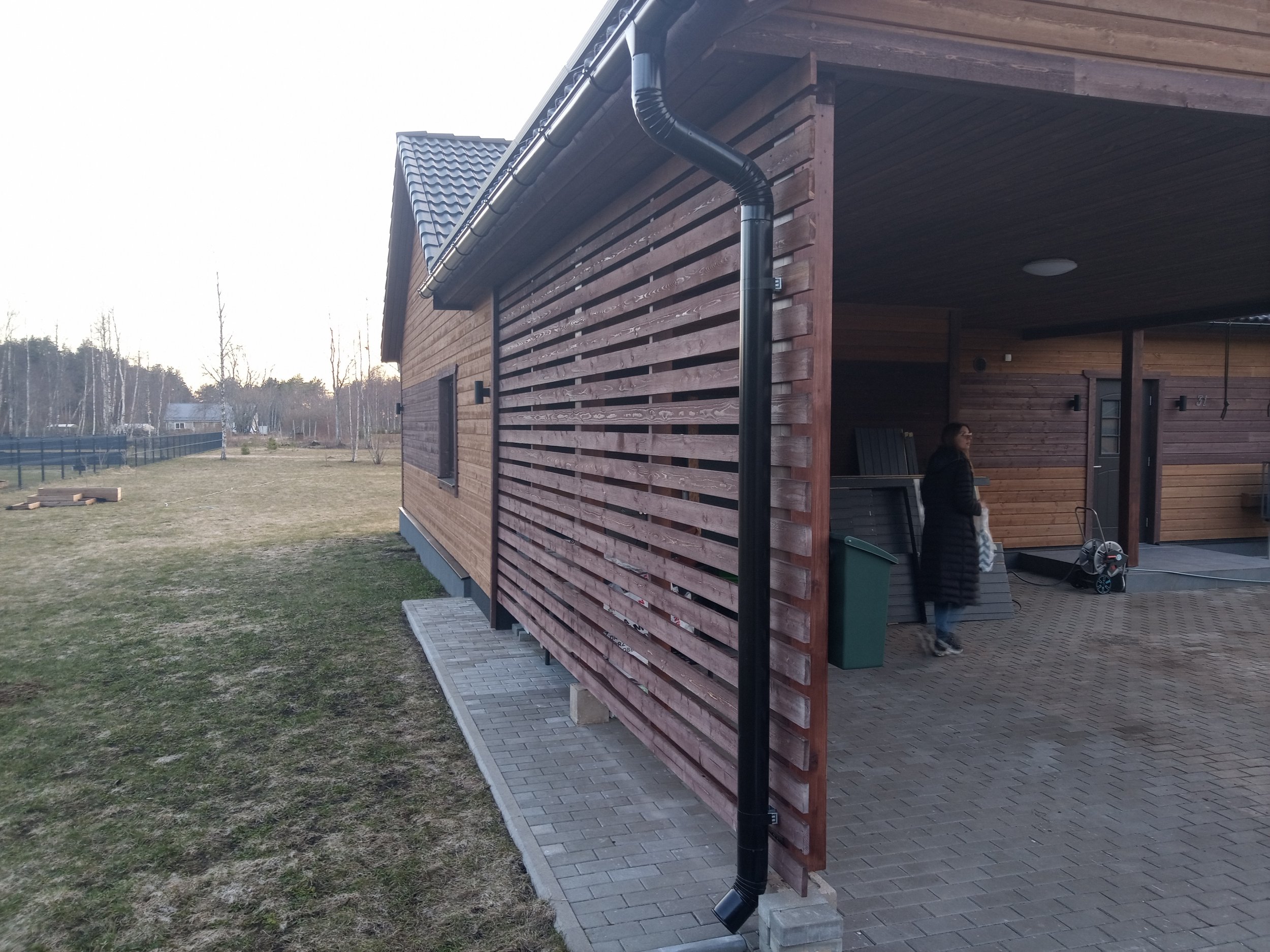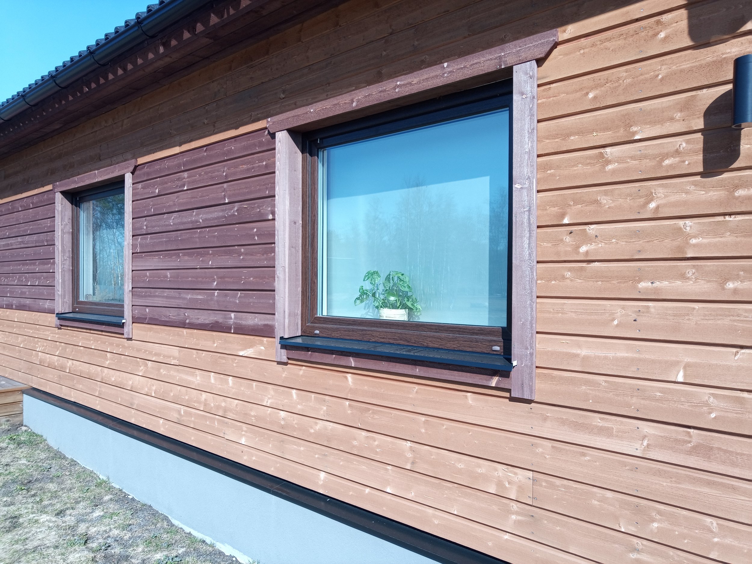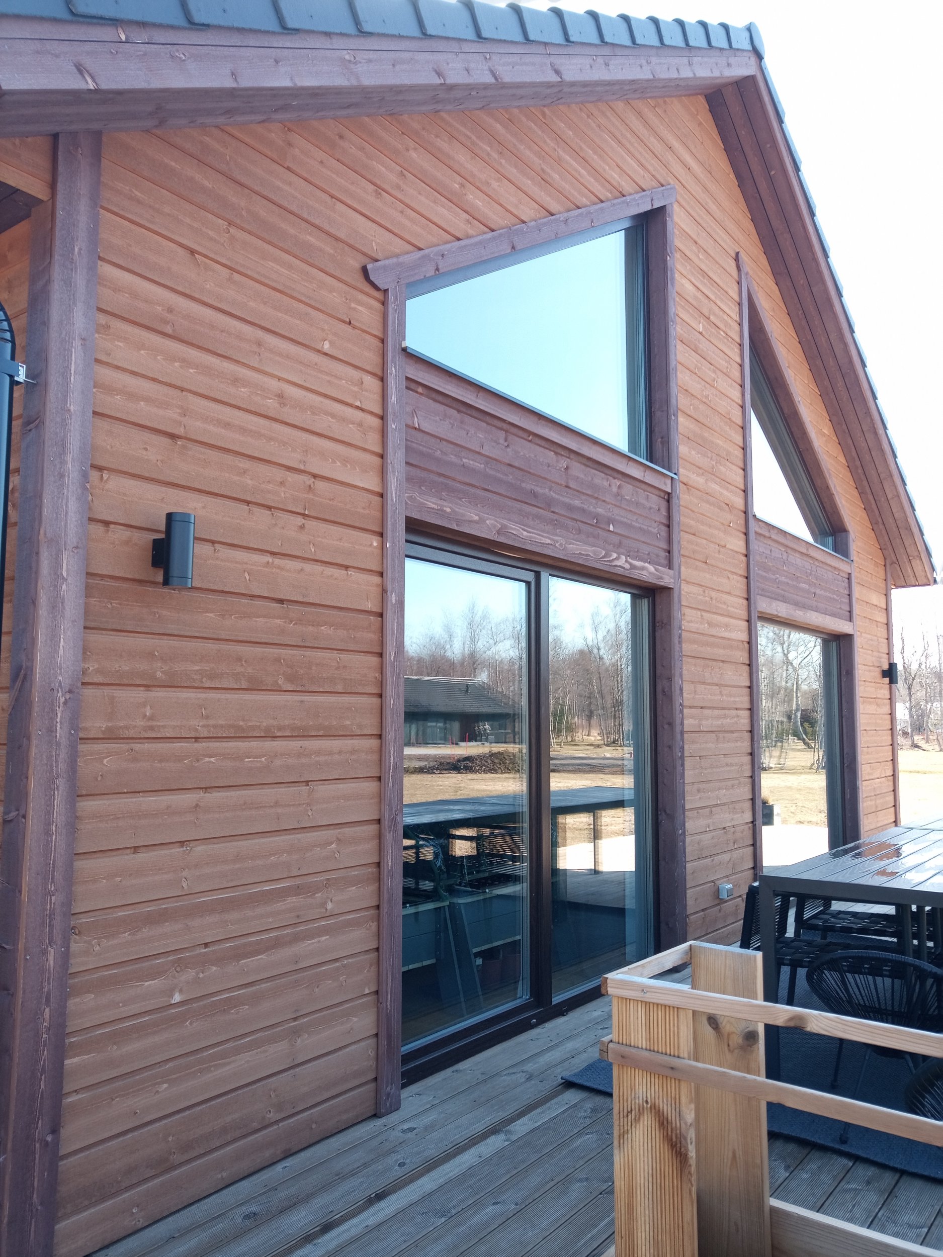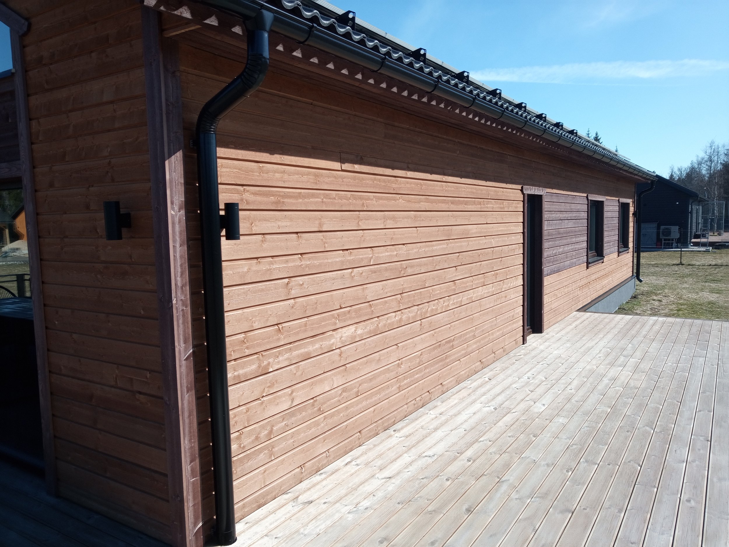 Laudisel on peal tehasest üks peits, maja saab intensiivselt päikest. Uus värvikihi tüüp peaks taluma seda pikalt. Värvitavat seina pinda on 187.51 m2, auto katusealune lae pind 43.31 m2 ja autoaluse külje aiaosa+postid 31.56 m2