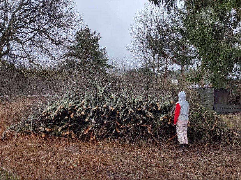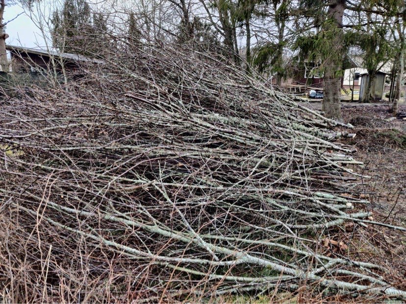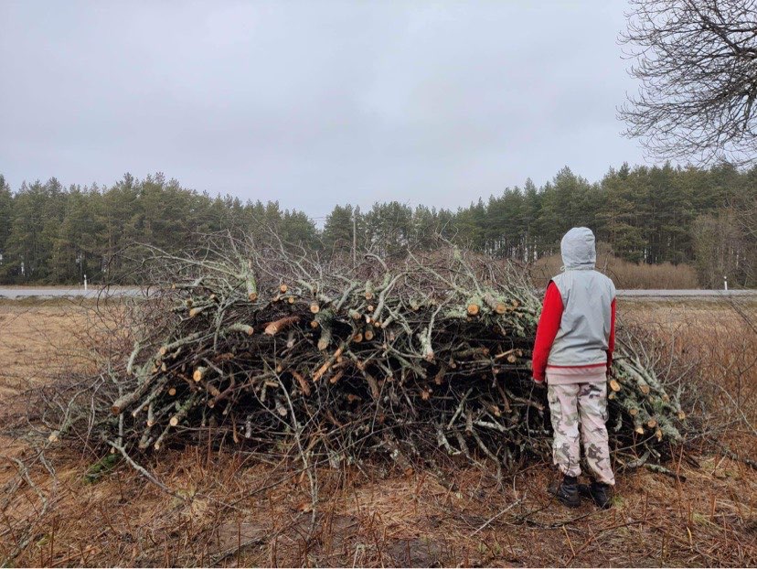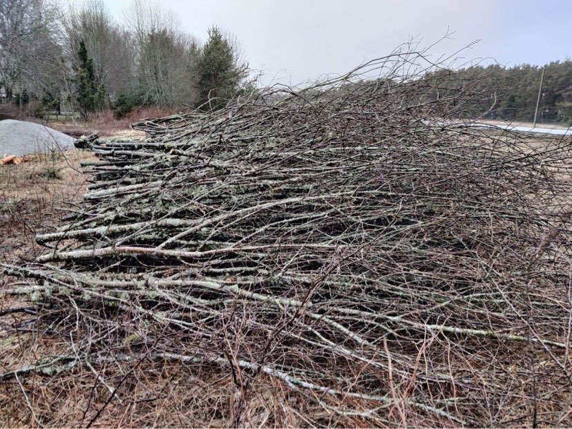 Tarvis ära utiliseerida 2 hunnikut puuoksi. Oksad korrapäraselt laotud.