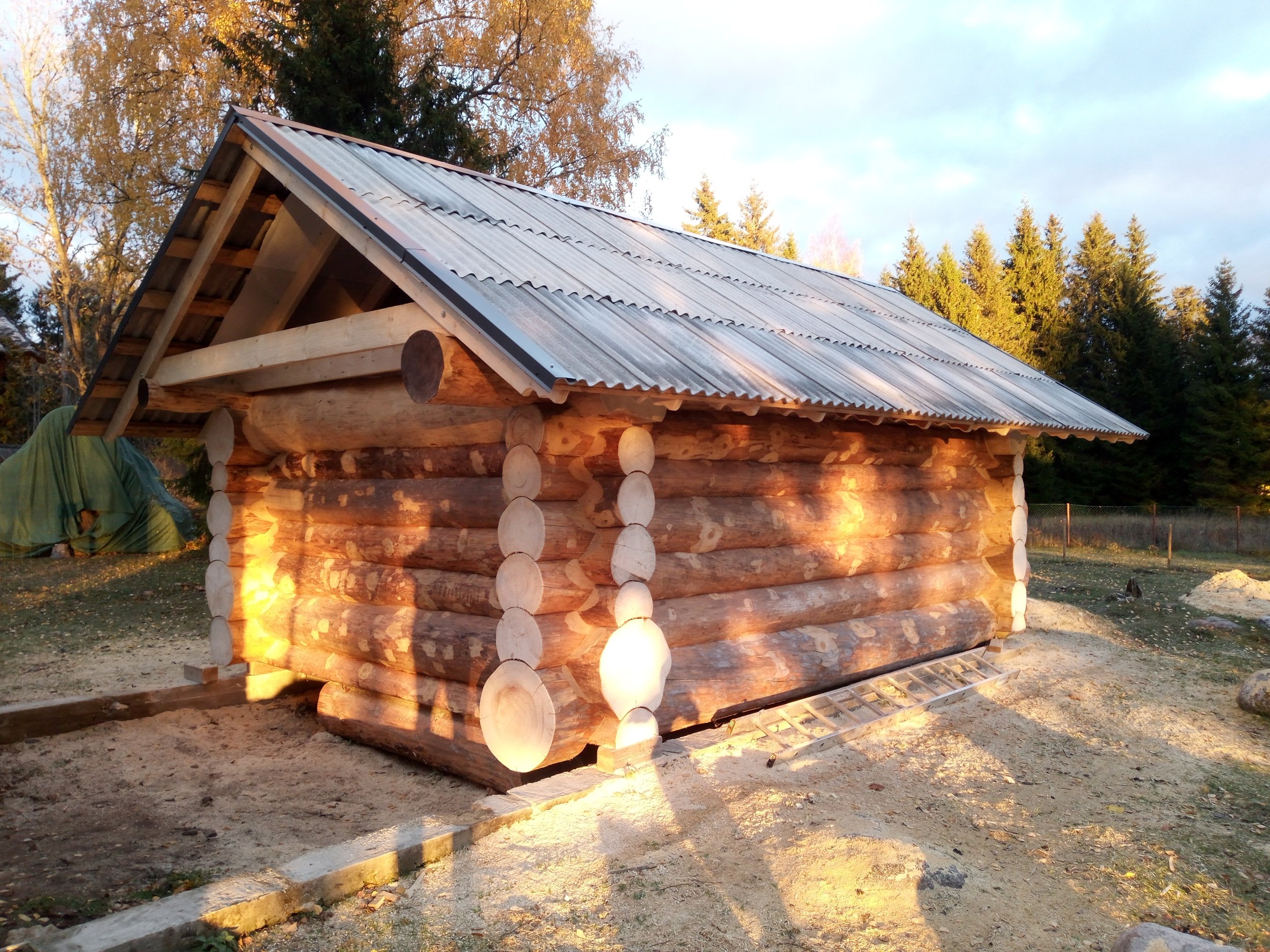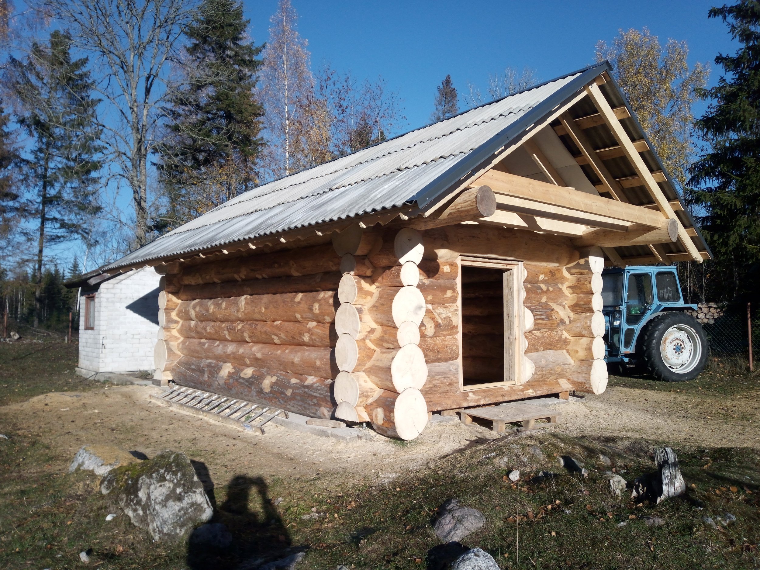 Saun ümarpalgist, seinapalgi täismõõdud 6300x4300, katuse alune pind 8150x5700. Viilust palkosa alaservani kõrgus 3800.