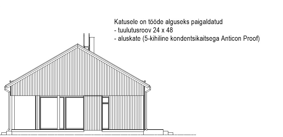 Vaja paigaldada roovitus, reakivid, harjakivid, äärekivid parem-vasak. Katusekalle 30 kraadi.