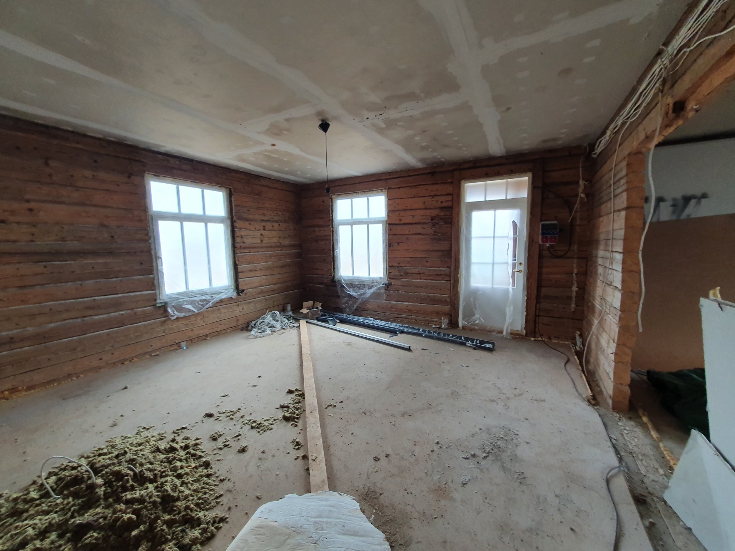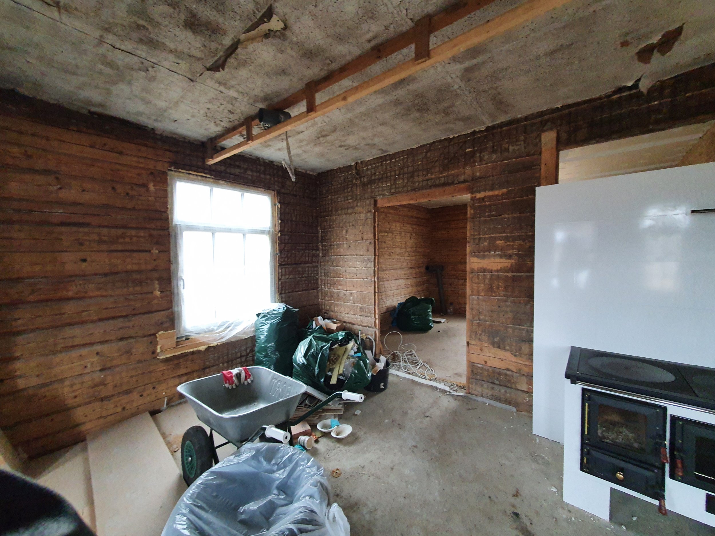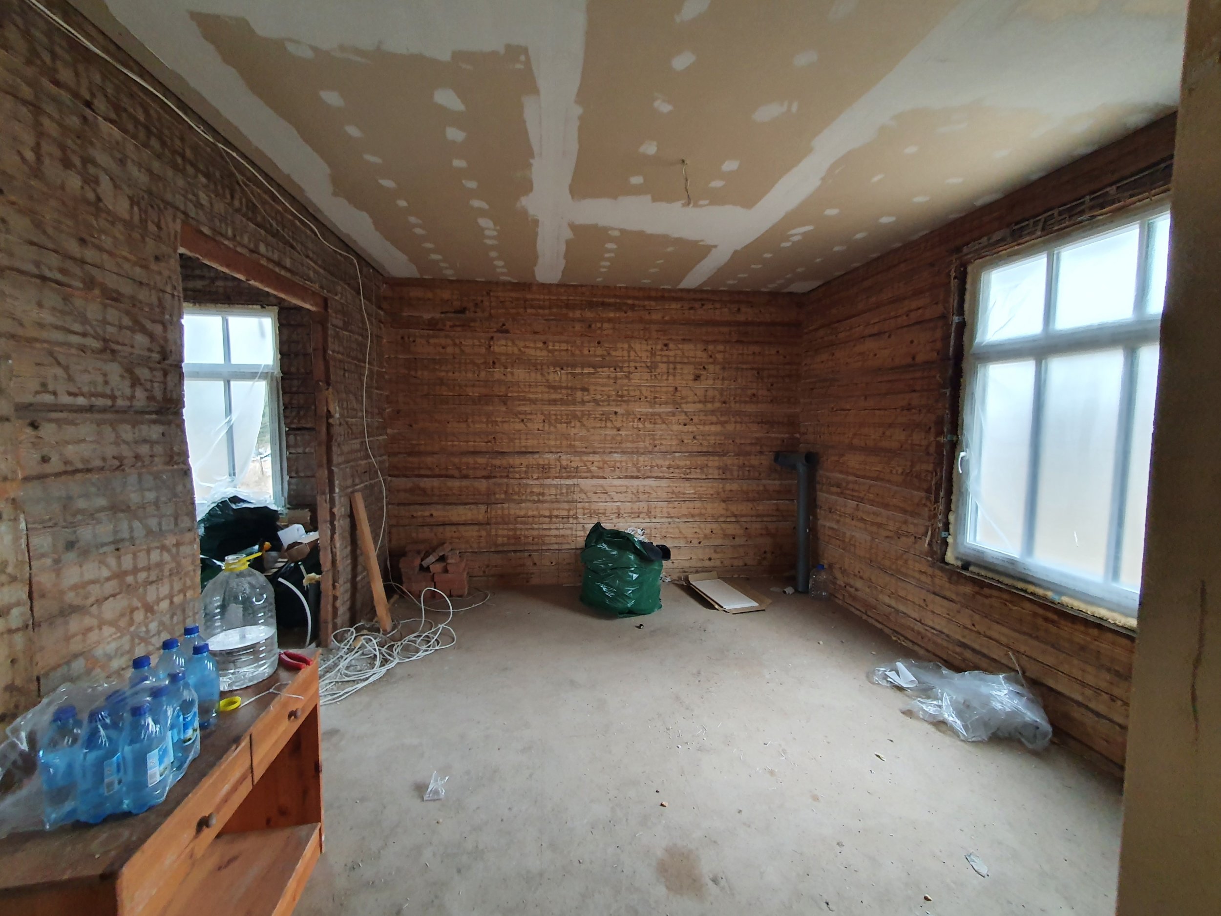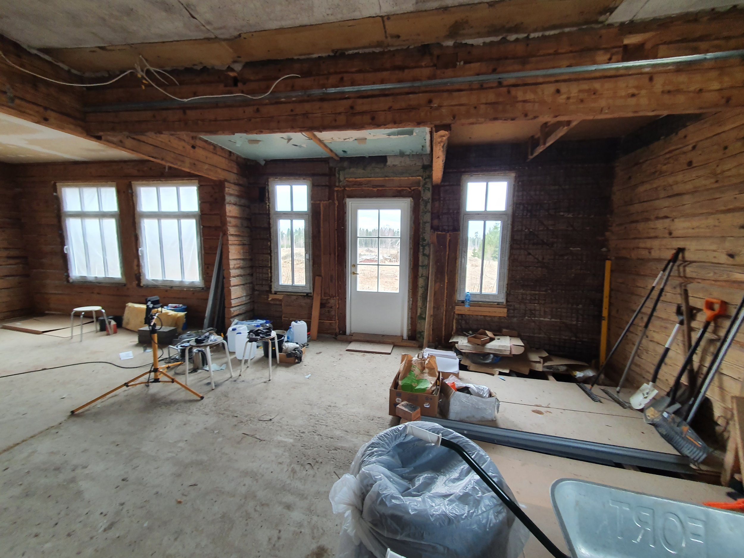 Vana palkmaja siseehitus- ja viimistlustööd. Siseruumide pindala kokku ~130m2, kokku 6 tuba. Sisetööde alguseks on valmis rajatud uus betoonpõrand., seinad puhastatud palgini ning vahelagi avatud (vana "must" laudis eemaldatud, kandvad talad nähtaval).