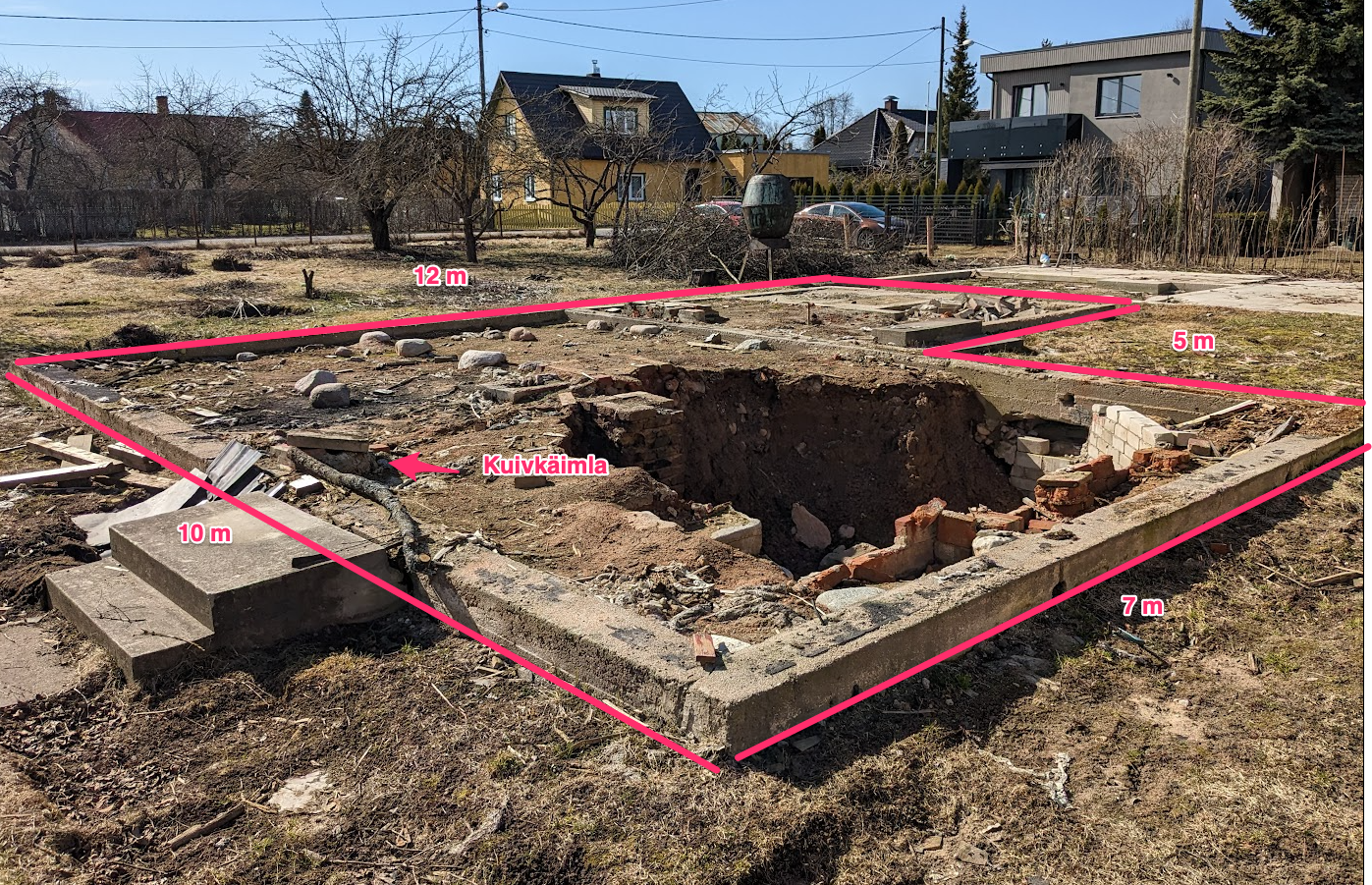 Hind koostatud vastavalt lähteülesandele. Sisaldab: lammutust, utiliseerimist, kaevet, vundamendipadja rajamist, lintvundamendi rajamist/isoleerimist/hüdrotõket/kuivenduse rajamine/tagasitäidet, põrandate ehitust koos kõige sisalduvaga(elekter, tarbevesi, kanalisatsioon, vesipõrandaküte)