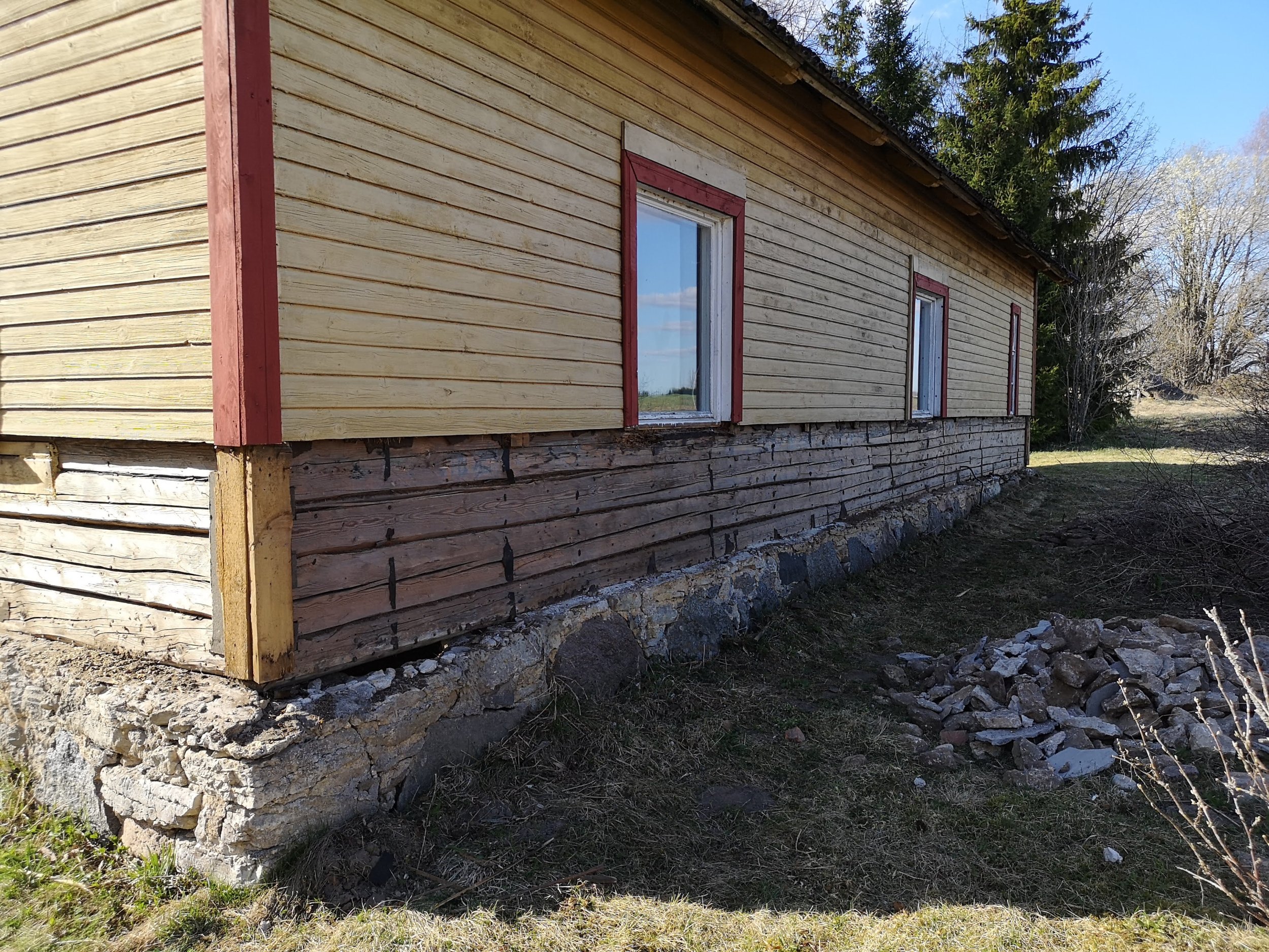 1935. a ehitatud palkmaja perimeeter on ca 46m (pikkus ca 14m, laius ca 9m) ja vundamendi kõrgus 40-60cm. Vundament on laotud maa- ja paekividest. Majas sees on vundament kehvemas seisus, seega eeldame, et nn tugevdusvalu teostatakse majas sees. Hüdroisolatsiooni pole küll vast kasutatud, kuid alumised palgid tunduvad esmapilgul olevat suuremas osas tugevad. Suured aknaavad on ca 120cm laiad ja ca 140cm kõrged.