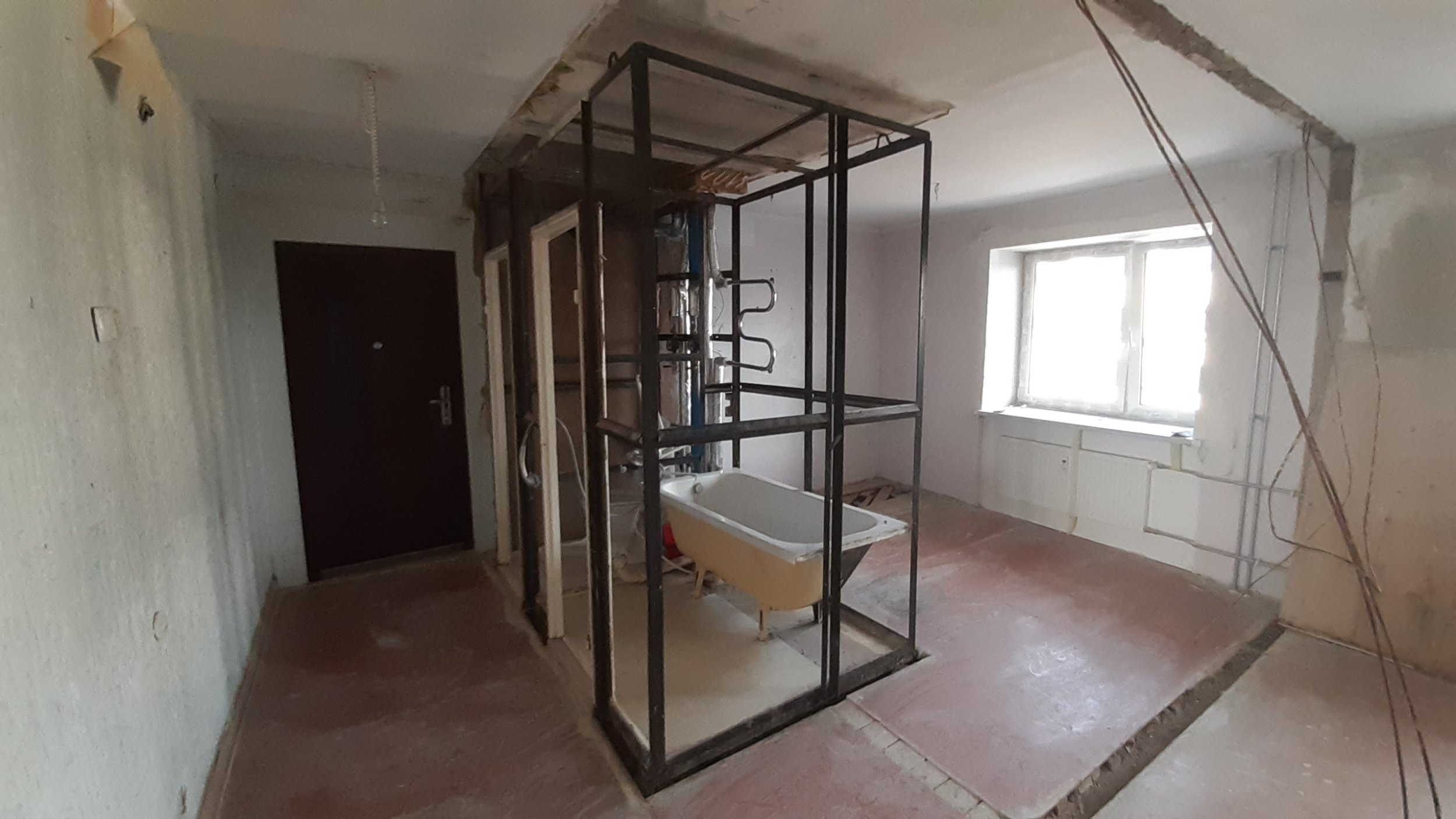 NB! Vannituba tuleb pildil oleva raamistiku asemele, hetkel pole seal midagi peale püstaku. Ka põrandad on üles võetud.