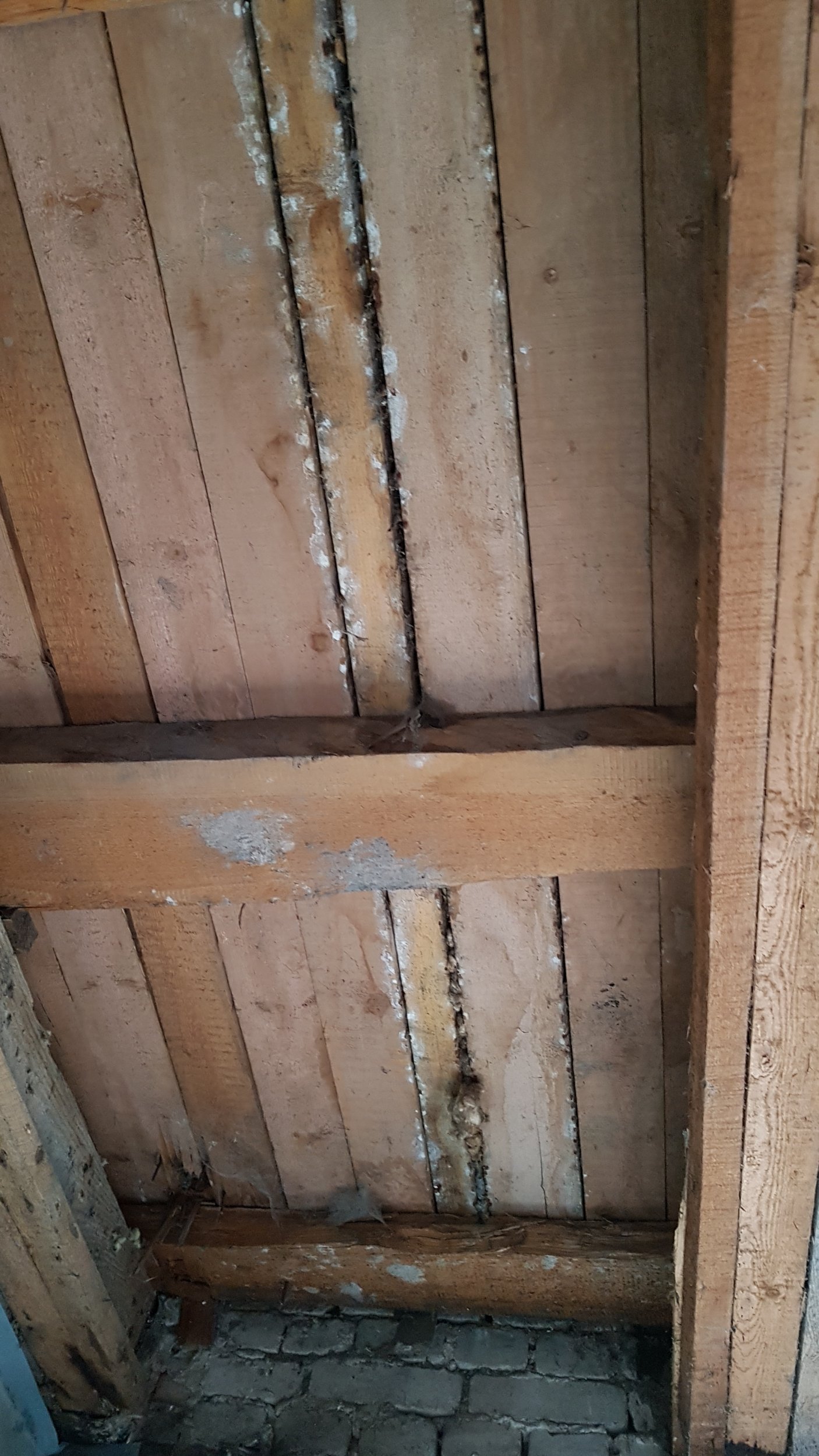2. Pritisida puidukaitse vahendit Boracol 10-3BD kohtadesse, kus on näha kuivanud vee niresid või kergelt mädanenud pinda. Arvestada, et kaetav pind on umbes 20m2. Eemärk on hoida ära hallituse arenemist või teket.