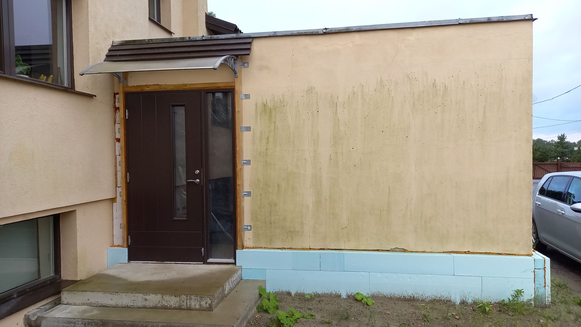 Sokkel katta fassaadiplaadiga (liimida) või õhekrohviga.