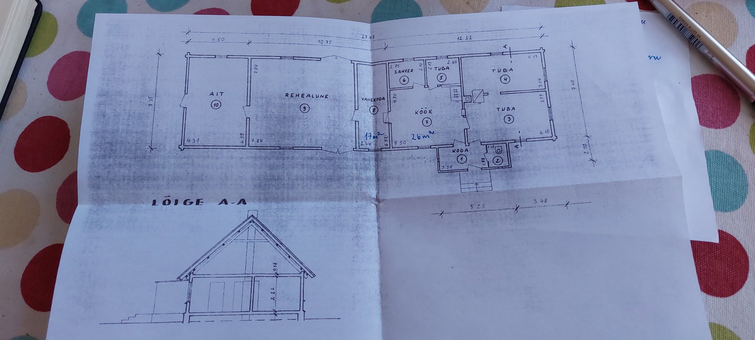 Otsin ehitusfirmat, kes ehitaks Läänemaal rehielamusse (nö kuuri alla) mittekandva seina, kasutades osaliselt olemasolevat taaskasutatud ehitusmaterjali. Tegelikult on vaja seina juurde ka põrandat, lage ja paariastmelist puutreppi. Selles vaheseinas tahame kasutada olemasolevat vana ust ja aknaid. Soojustamist ja kipsplaate pole vaja. Kuna on vaja ka uut köögipõrandat, siis oleks põranda alune ruum oleks hea täita kõrval asuva köögi vana põranda tsemenditükkidega - seega köögipõranda tühjaks kaevamisel pole vaja vana materjali kaugele tassida. Köögipõrand on võimalik teha nii valatud kui laudpõrand (eelistatud on laudpõrand, aga tahaksime ehitusmehega aru pidada, kumba varianti eelistada). Olen teadlik suuremast töödemahust laudpõranda puhul. Otsime ehitusmehi, kes on vanasse majja ennem ehitanud ja ei heitu kõverustest, mitte-loodis-olevatest seintest ja suhtuvad loovalt olemasolevasse palk - ja laudmaterjali. Samas ei tohiks tulemus välja näha nagu naljasein käepärastest lippidest, nii et loomingulise ehitusmehe head mõtted leiavad tähelepanelikku kuulamist ja kompromissid uue ja vana materjali osas on tõenäoliselt vajalikud.