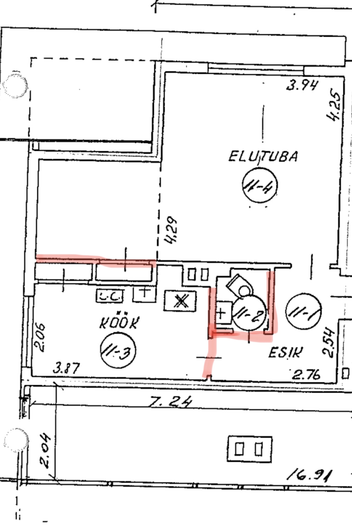 - vannitoa puidust vaheseinte lammutamine (plaanil punaselt)