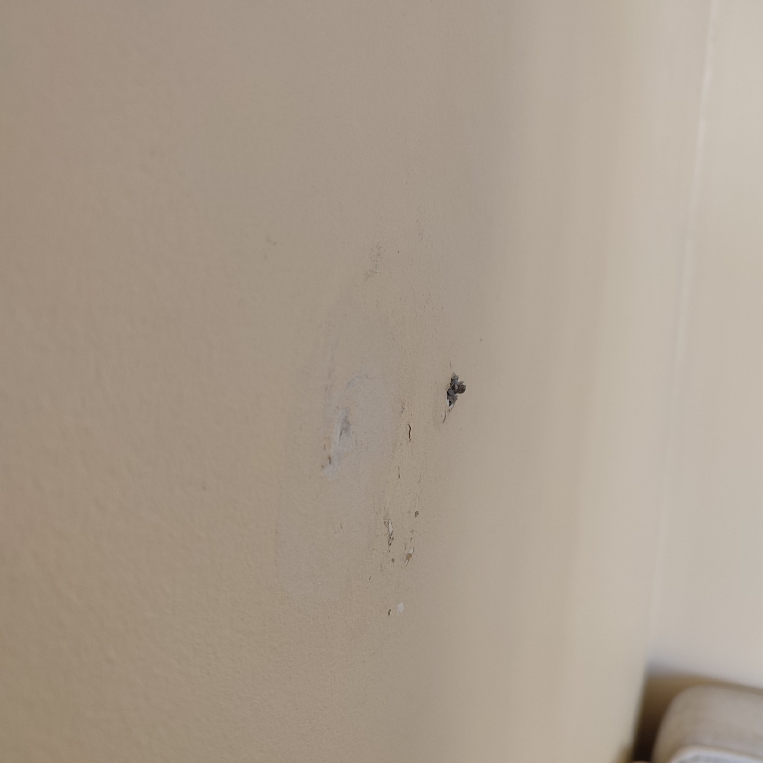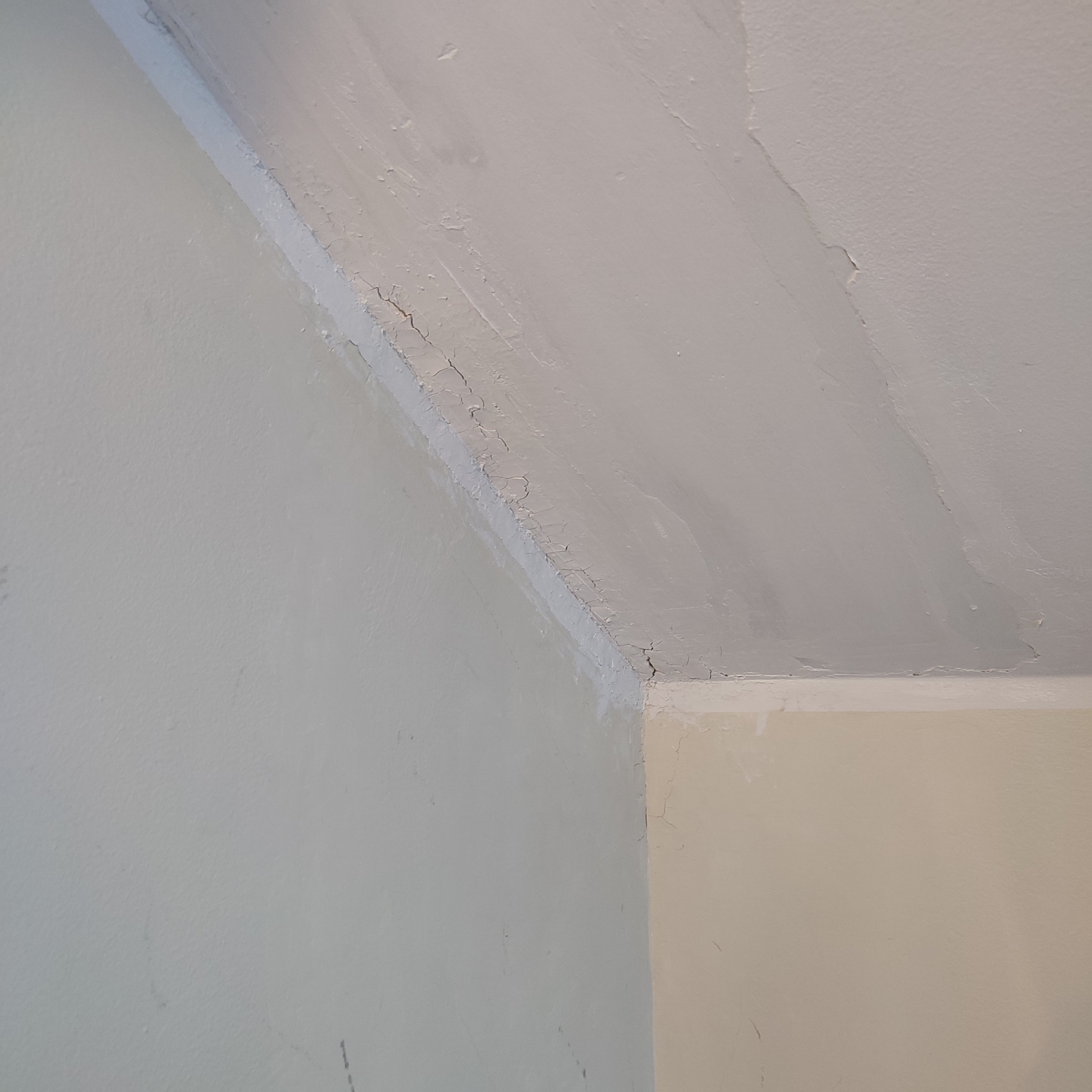 Magamistoas ühes kaldealuses nurgas niiskuskahjustus. Nurk välja lõigata ja paigaldada uued kipsplaadid.