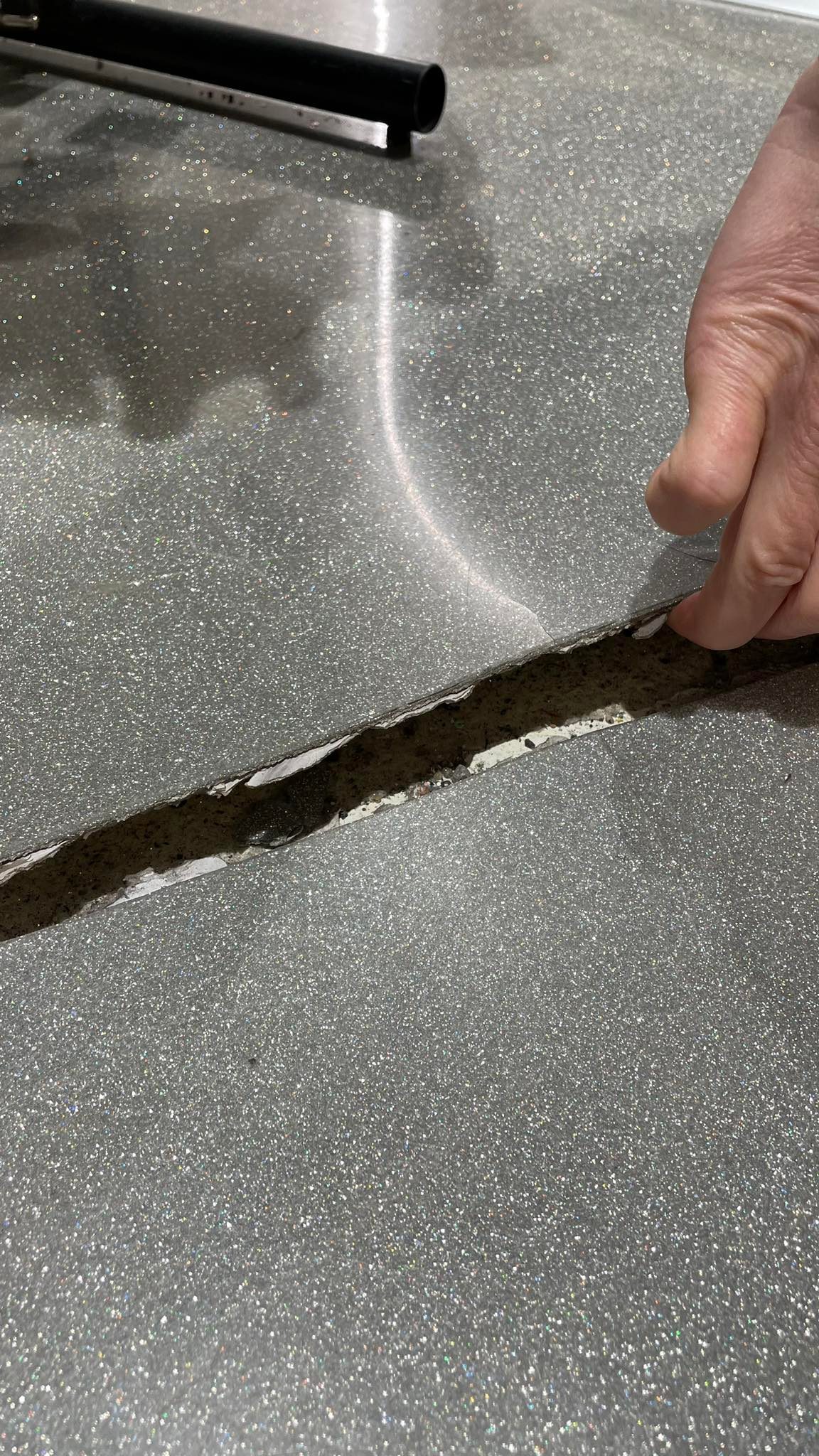 PVC on üle kogu pinna mõranenud ja kohati betoonpõranda küljest lahti.